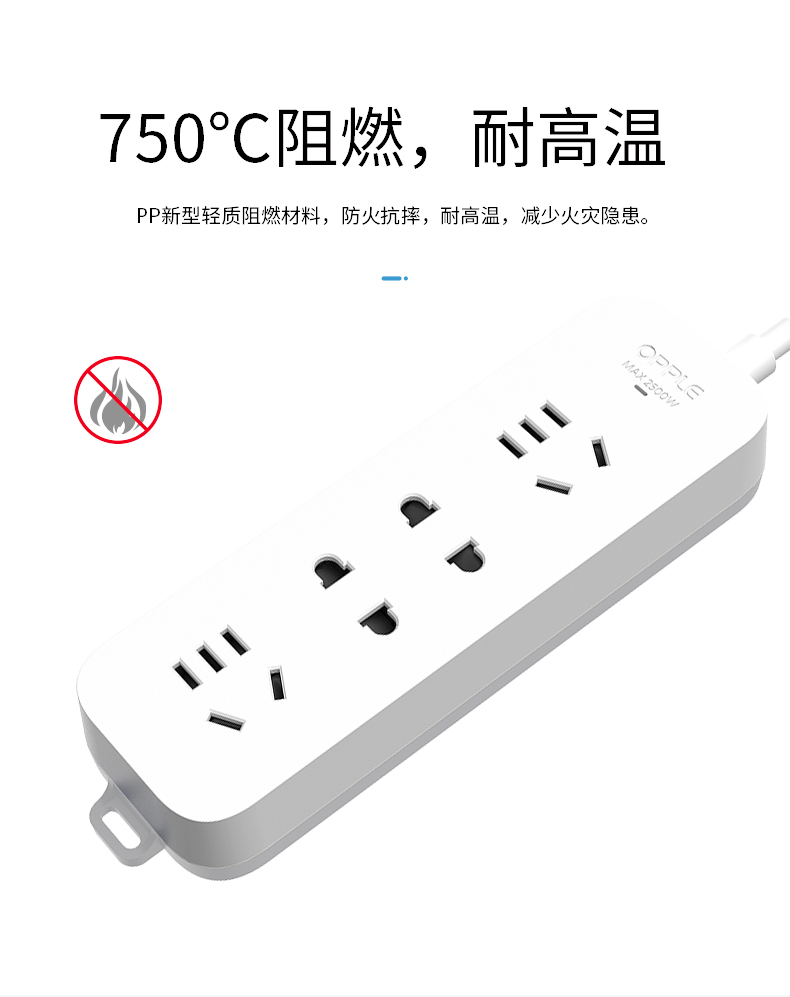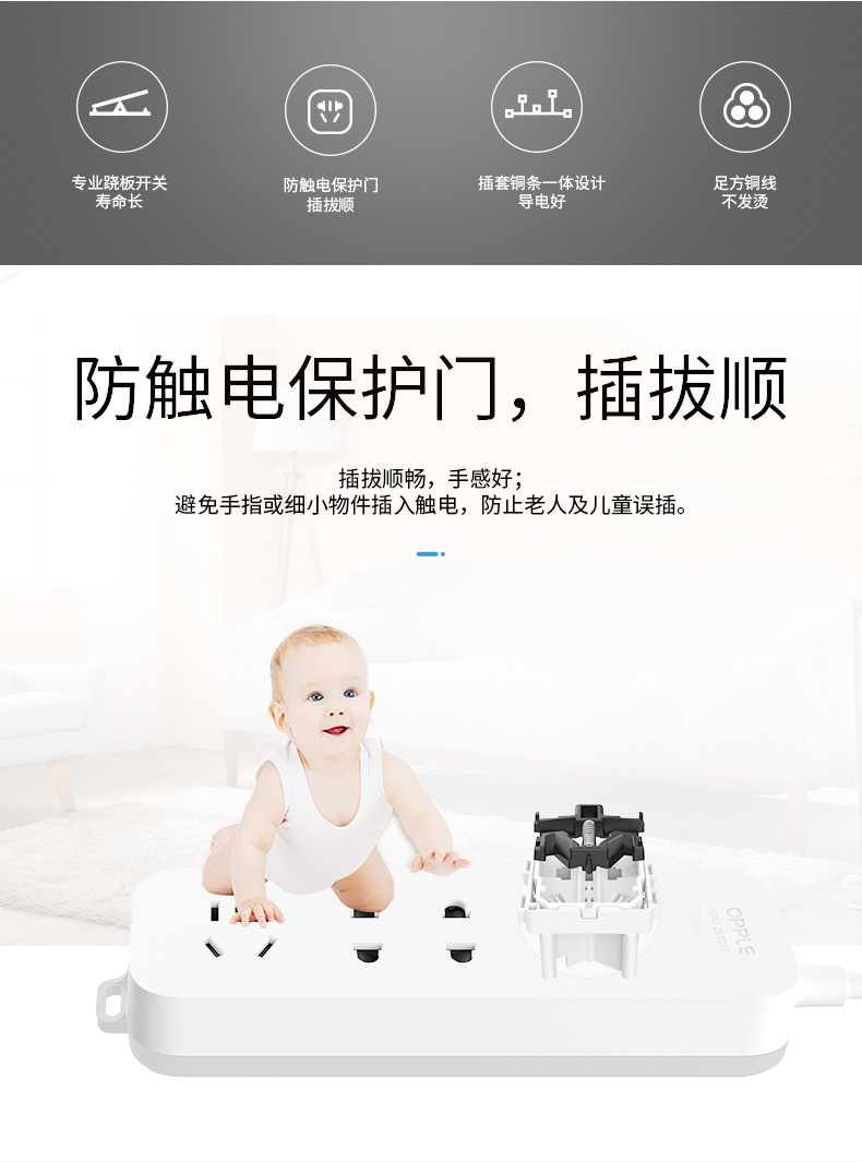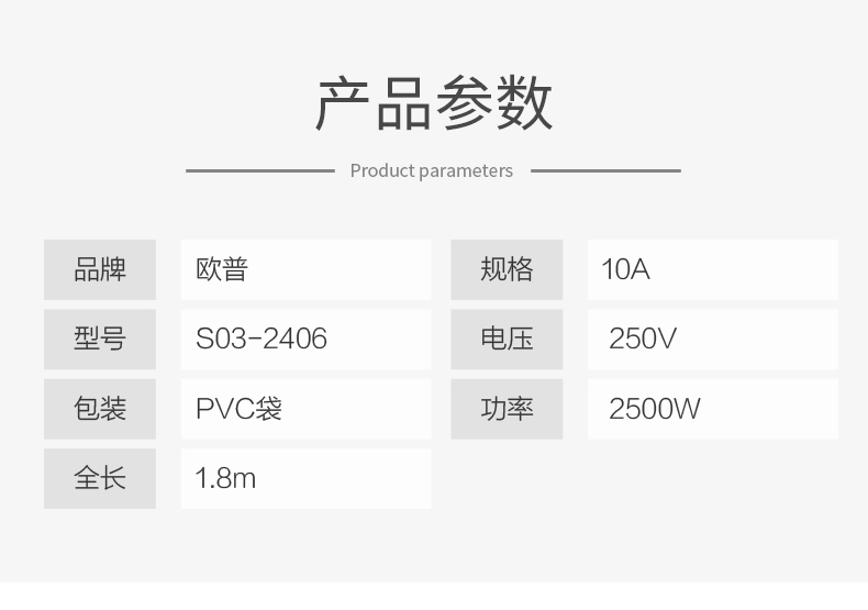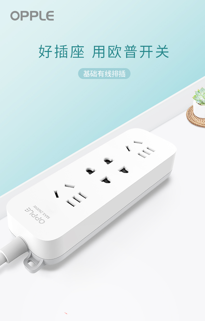 欧普照明 插线板S03-2406 规格:10A 250V~ 无开关-2个两孔+2个五孔-1.8M 个 白色
