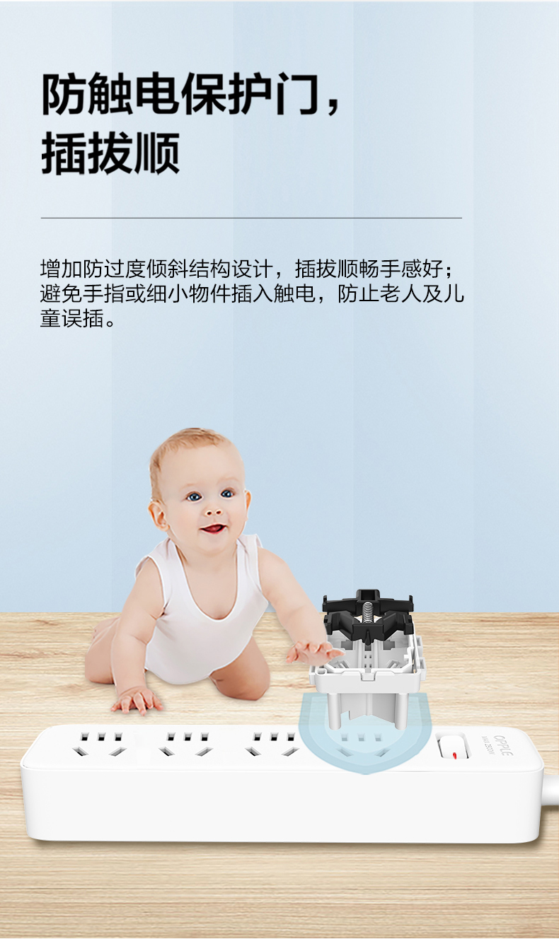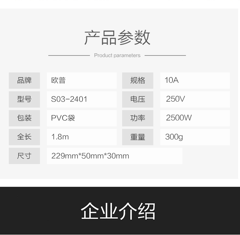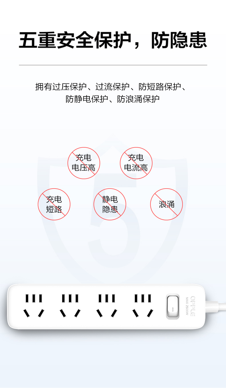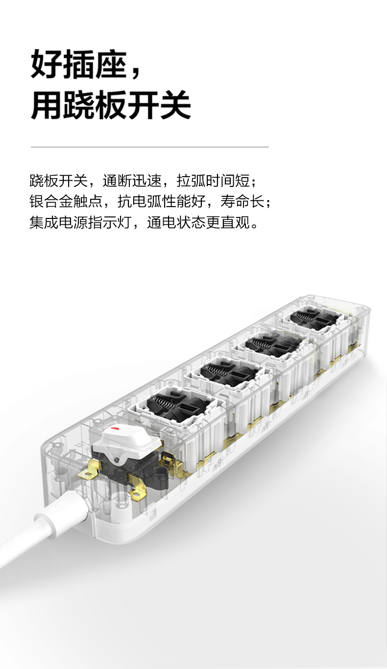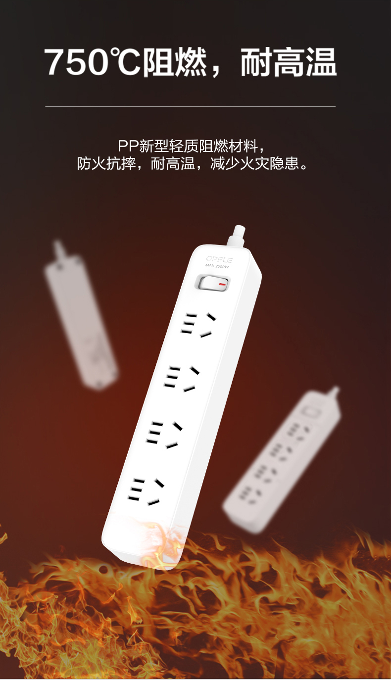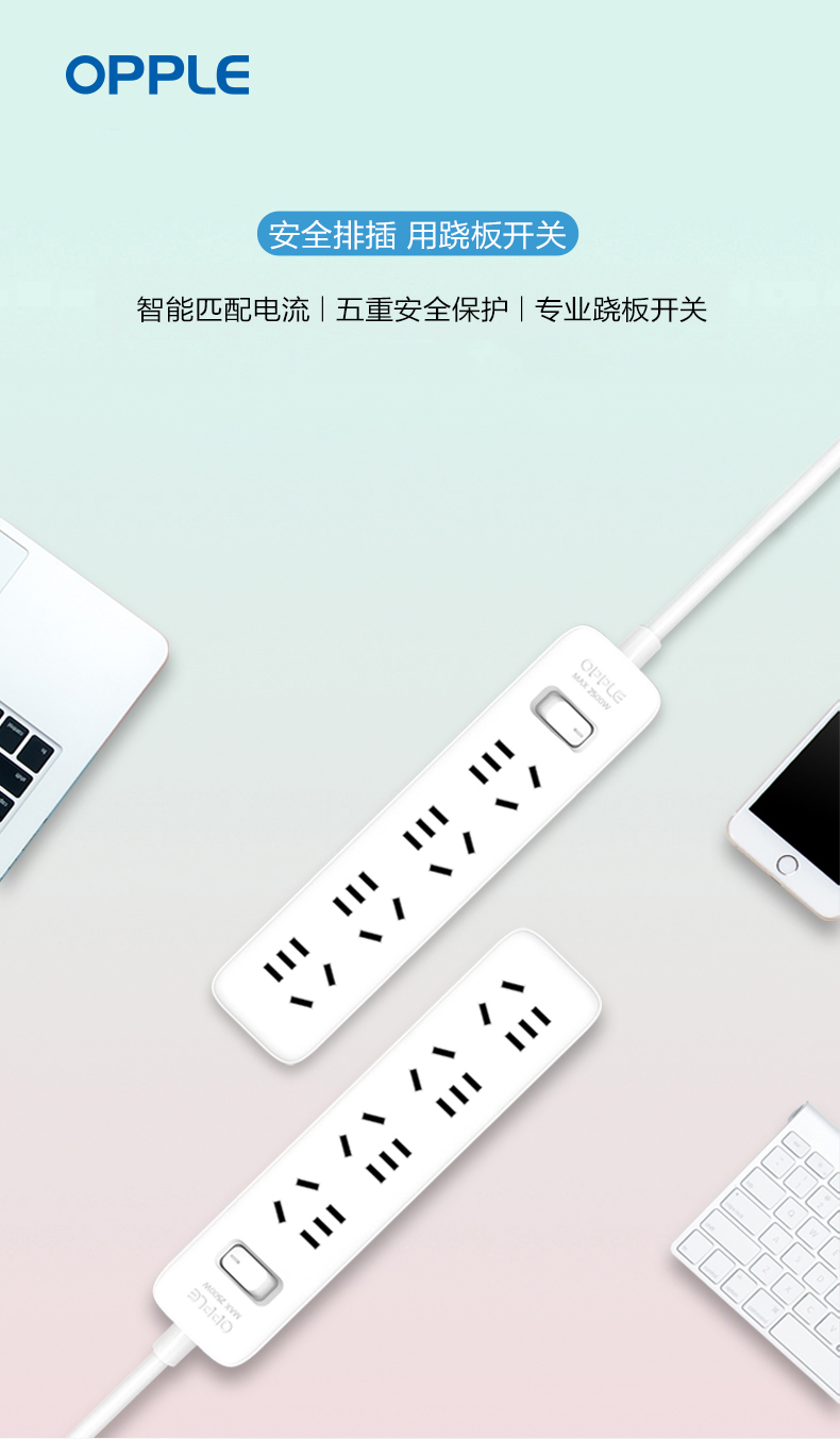 欧普照明 插线板S03-2401 规格:10A 250V~ 总控-4个五孔-1.8M 白色