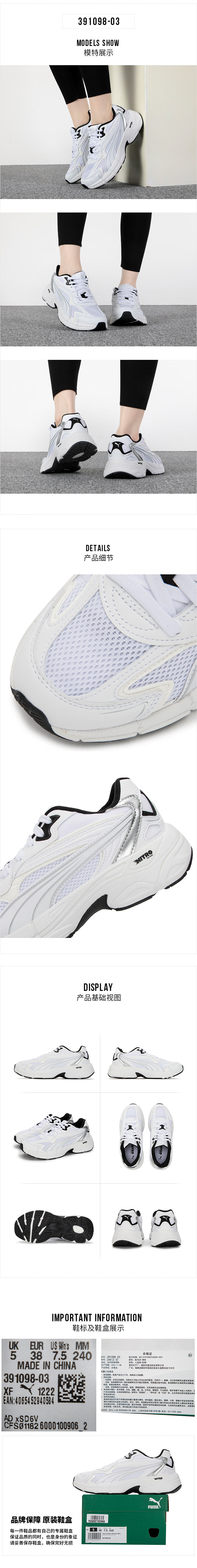 彪马(PUMA)女鞋 新款运动休闲鞋缓震耐磨透气复古时尚舒适跑步鞋 391098-03 白色 37