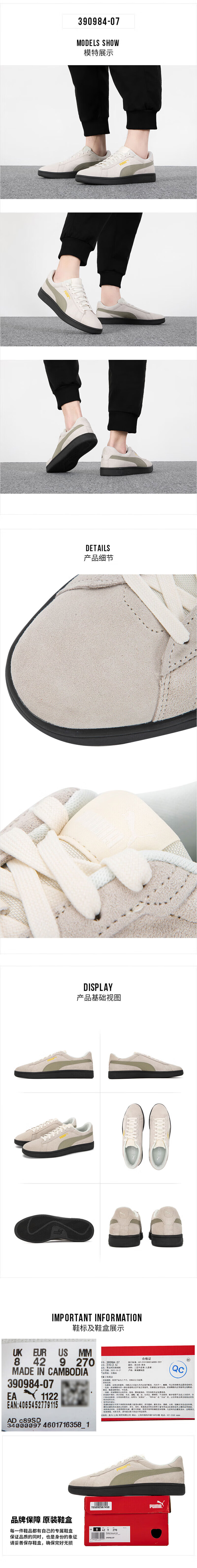彪马(Puma)男鞋女鞋 秋季情侣运动鞋轻便透气时尚潮流休闲鞋板鞋 390984-07 米白色-桦树绿-梨黄 40.5