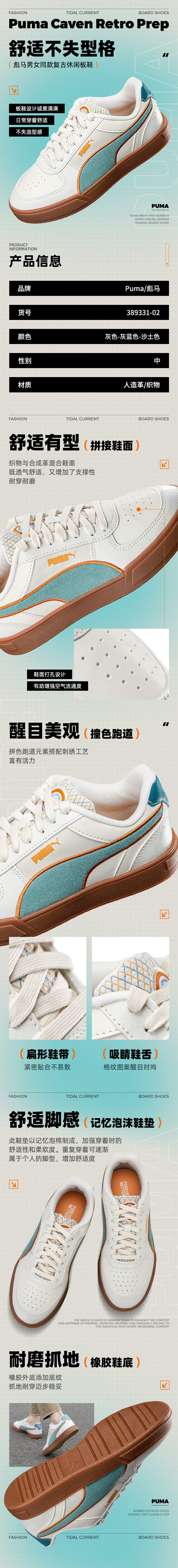 彪马(Puma)运动鞋男鞋女鞋 秋季新款休闲鞋 透气轻便时尚百搭低帮板鞋 389331-02 灰色-灰蓝色-沙土色 36