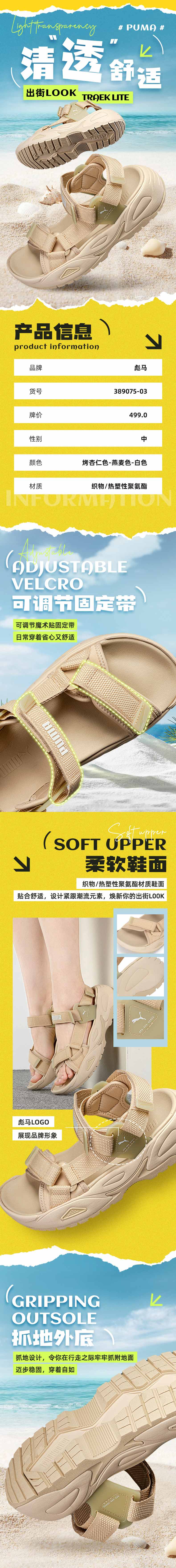 彪马(PUMA)男鞋女鞋 秋季户外运动鞋沙滩鞋舒适透气休闲鞋凉鞋 389075-03 烤杏仁色-燕麦色-白色 37