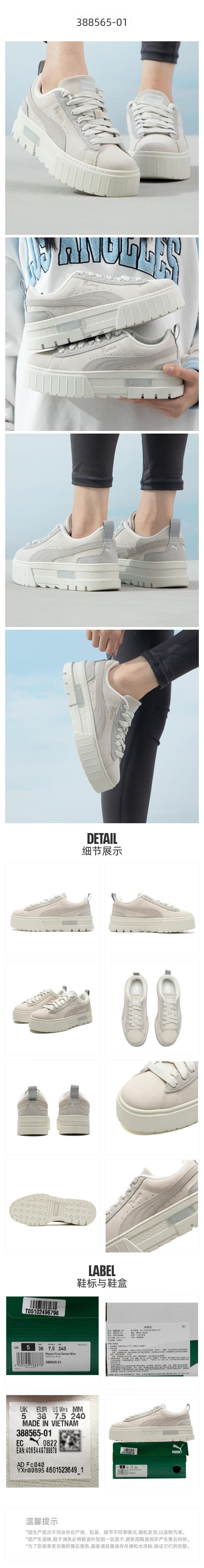 彪马(PUMA)女鞋 秋季新款时尚户外跑步训练运动鞋耐磨透气舒适休闲鞋 388565 浅灰色 36