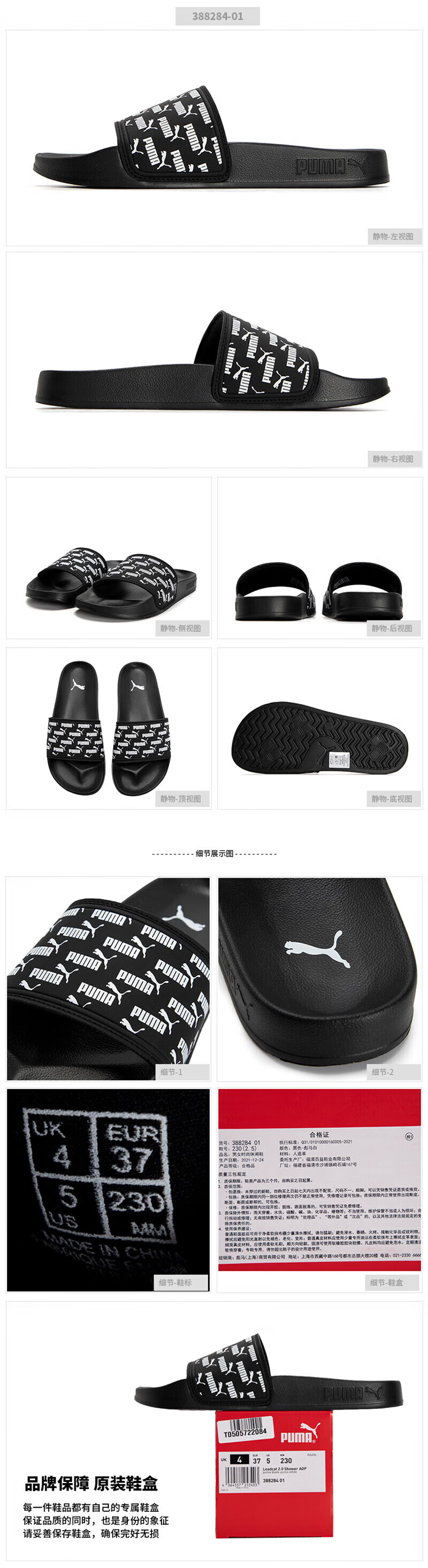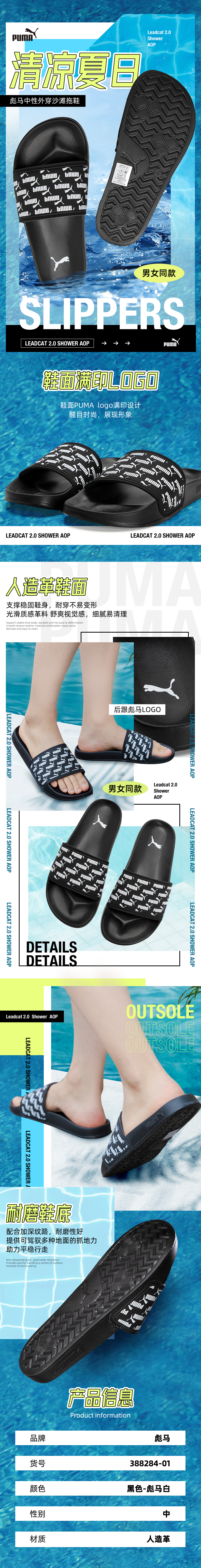 彪马(Puma)男鞋女鞋 新款运动鞋 透气舒适沙滩鞋 居家室内外凉拖鞋 388284-01 黑色 35.5