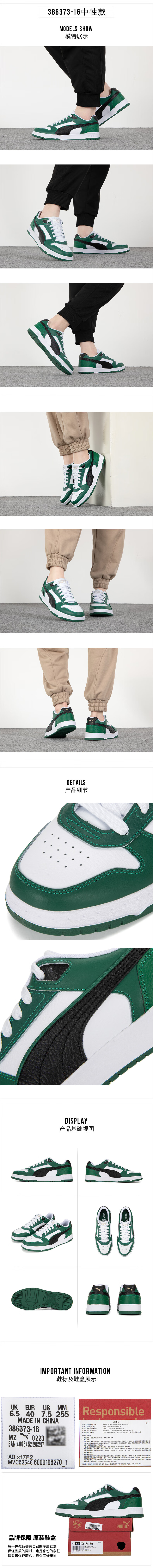 彪马(PUMA)男鞋女鞋 新款运动鞋轻便透气休闲鞋复古撞色低帮板鞋 386373-16 白-黑色-深绿色-金色 44.5