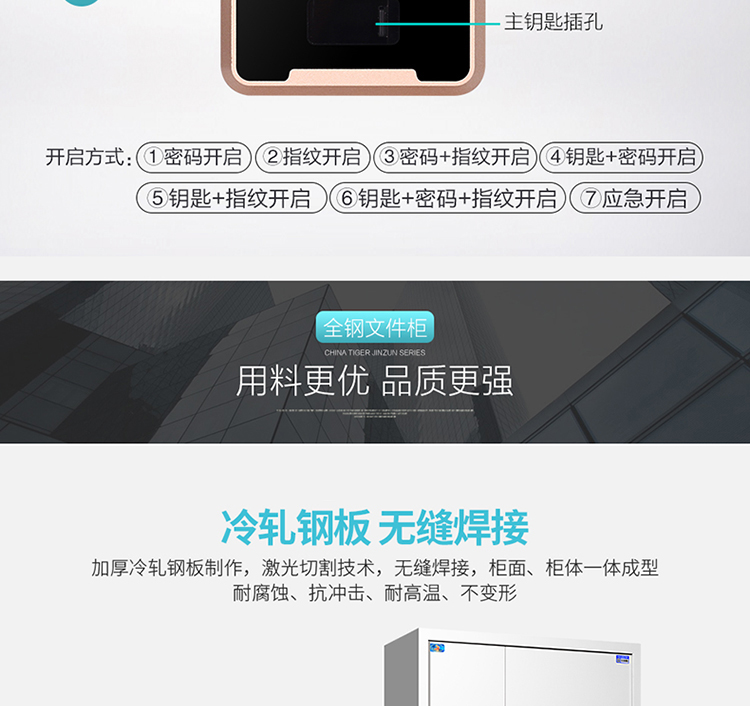 虎牌指纹密码锁保密柜资料柜档案柜大型保险柜器材柜办公柜文件柜 单位:台 灰色