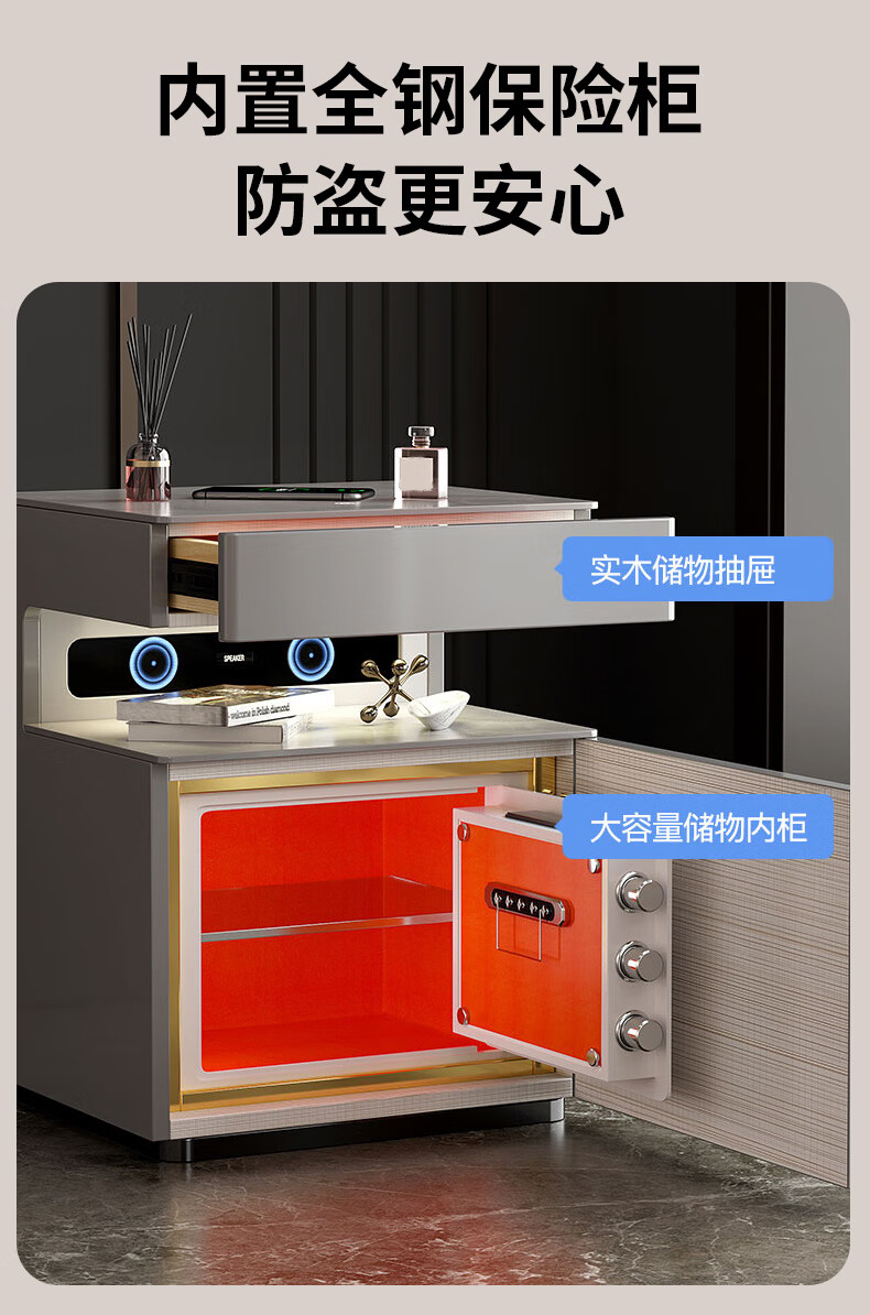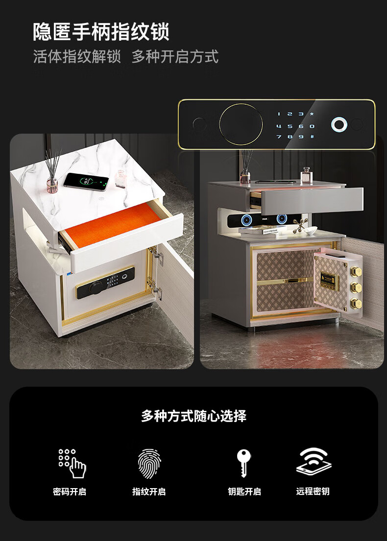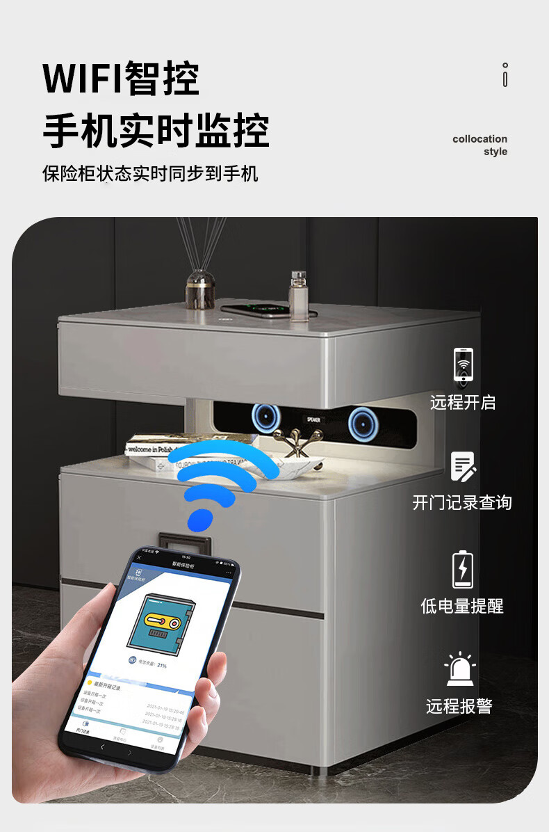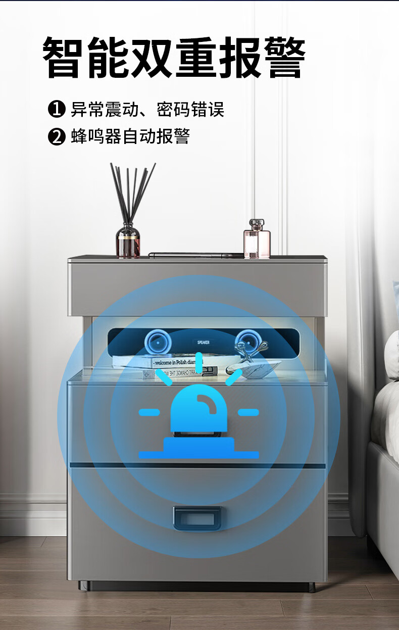 虎牌保险柜家用智能床头柜抽屉柜 单位:个 灰色