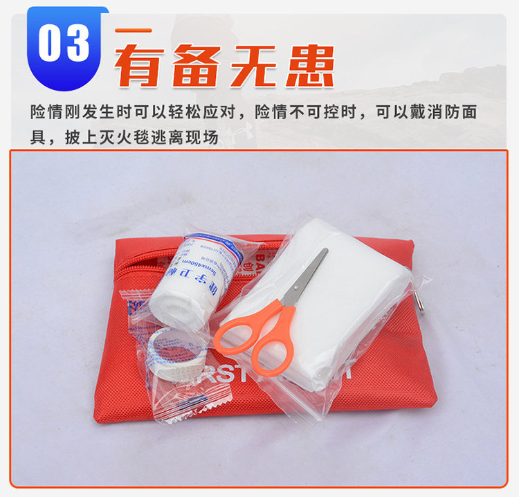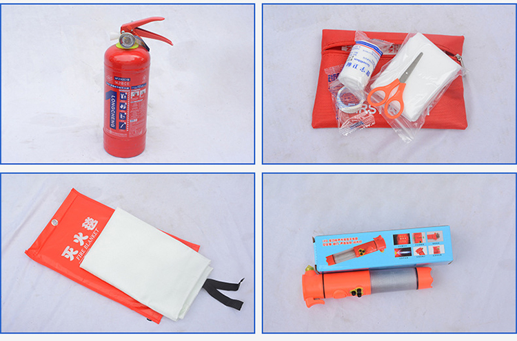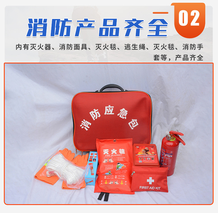 信霆 消防应急套装 消防应急包八件套(灭火毯+逃生面具+安全绳+强光手电+急救包+手套+一公斤灭火器 红色