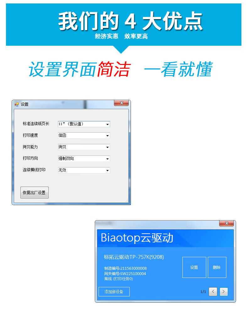 标拓TP-757K云打印版24针1+6联针式打印机免驱动安装/台 灰色