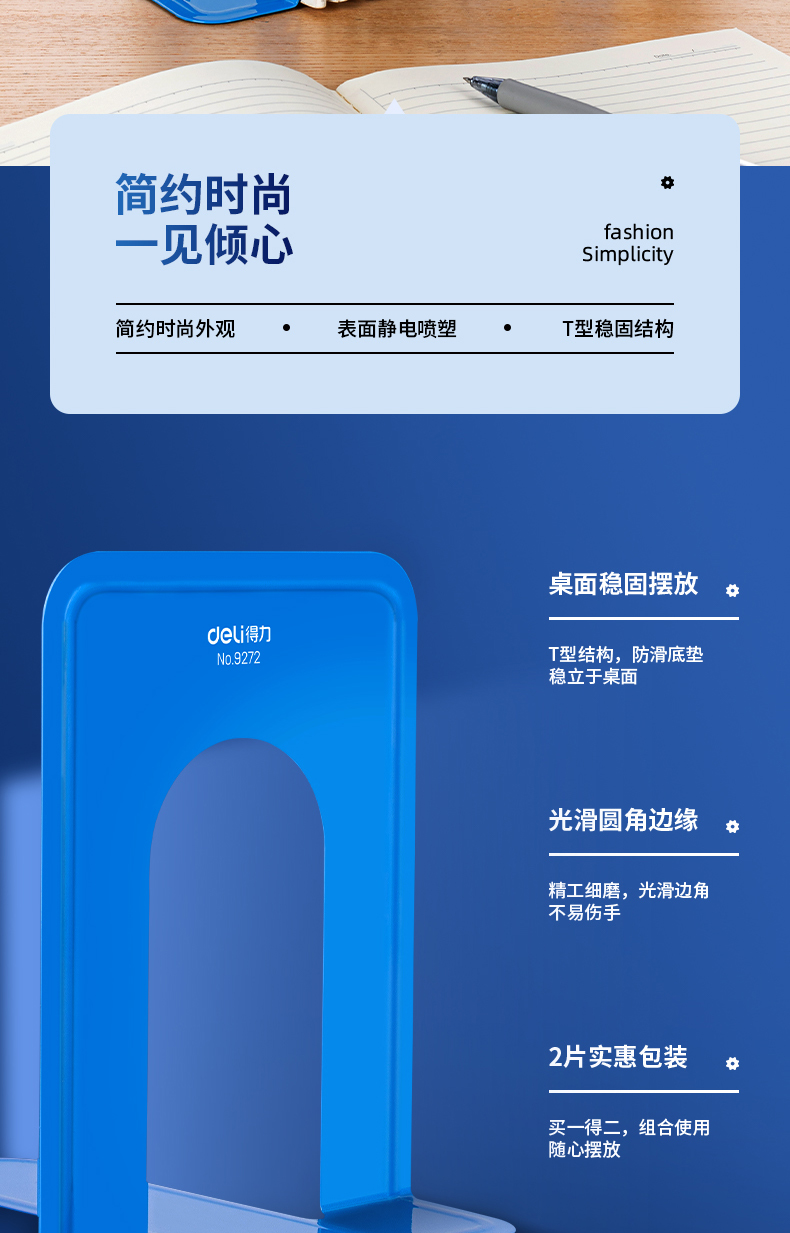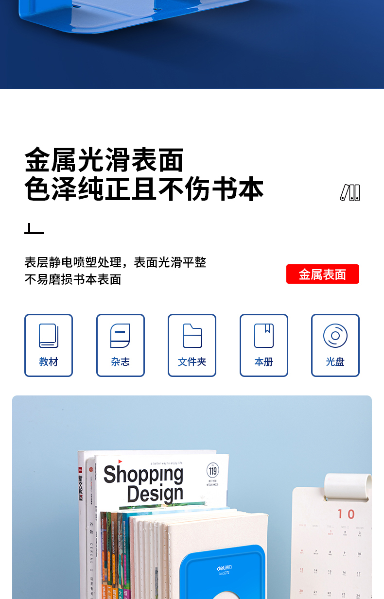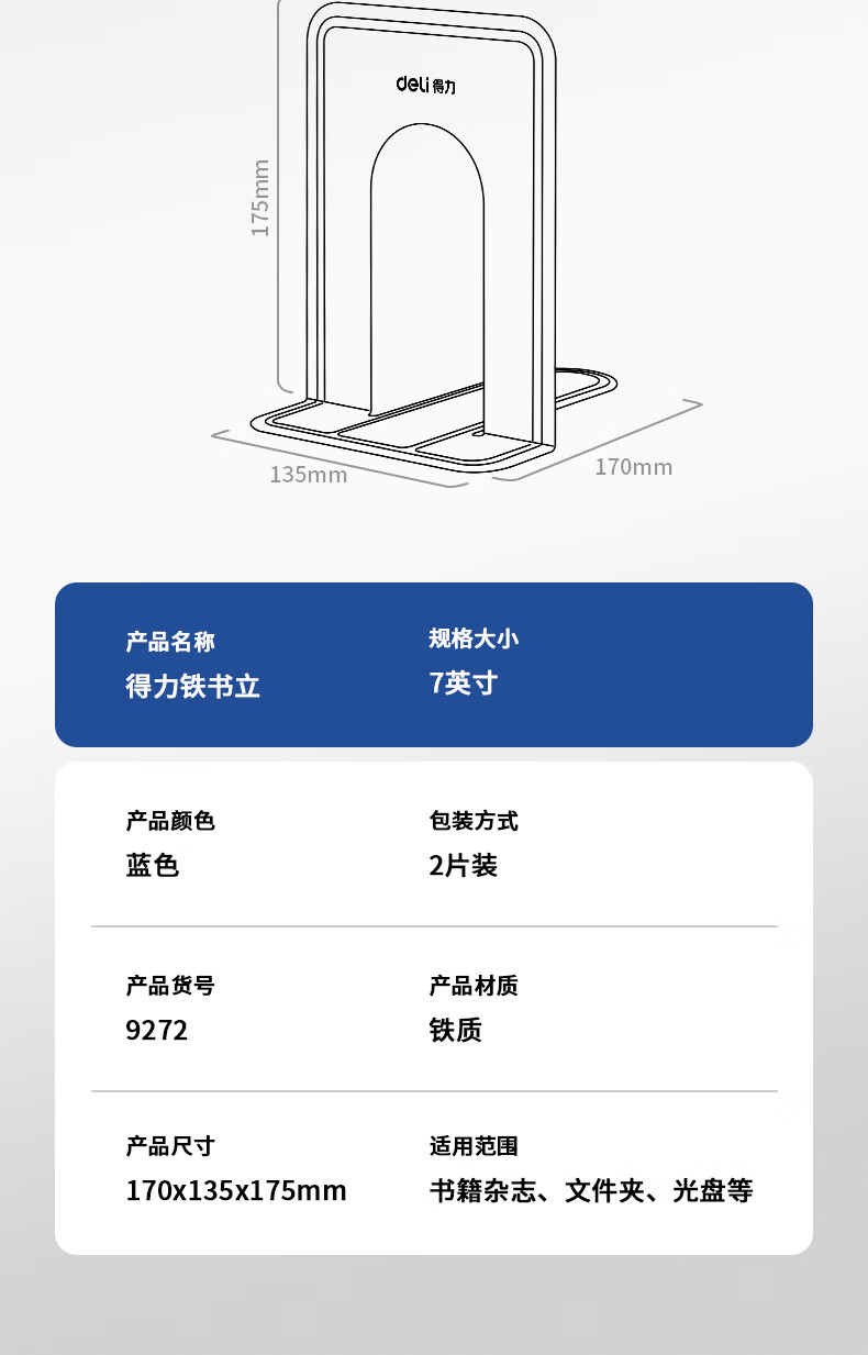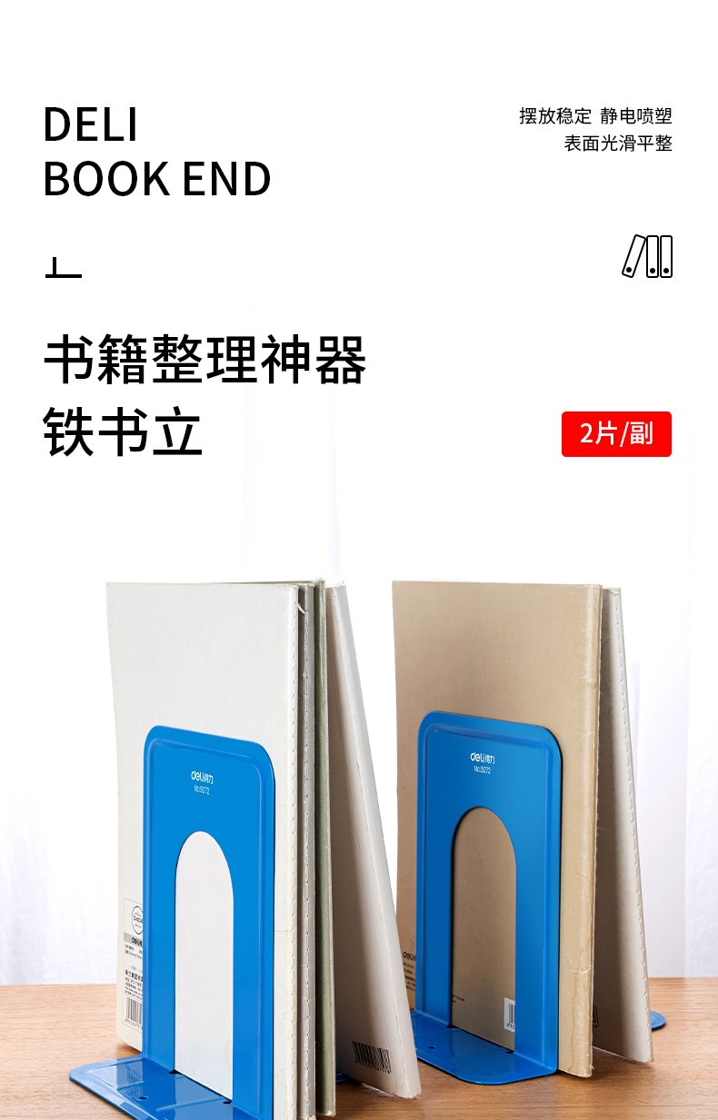 得力(deli)7英寸(高17cm)金属铁桌面书立 蓝色9272 2片/付 单位:付 蓝色