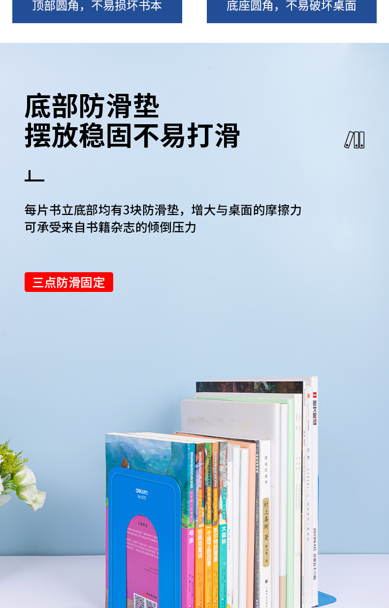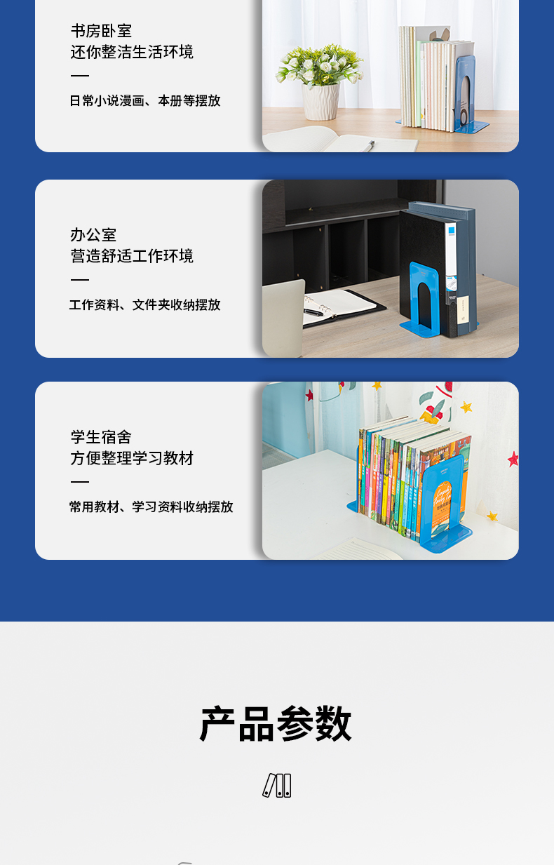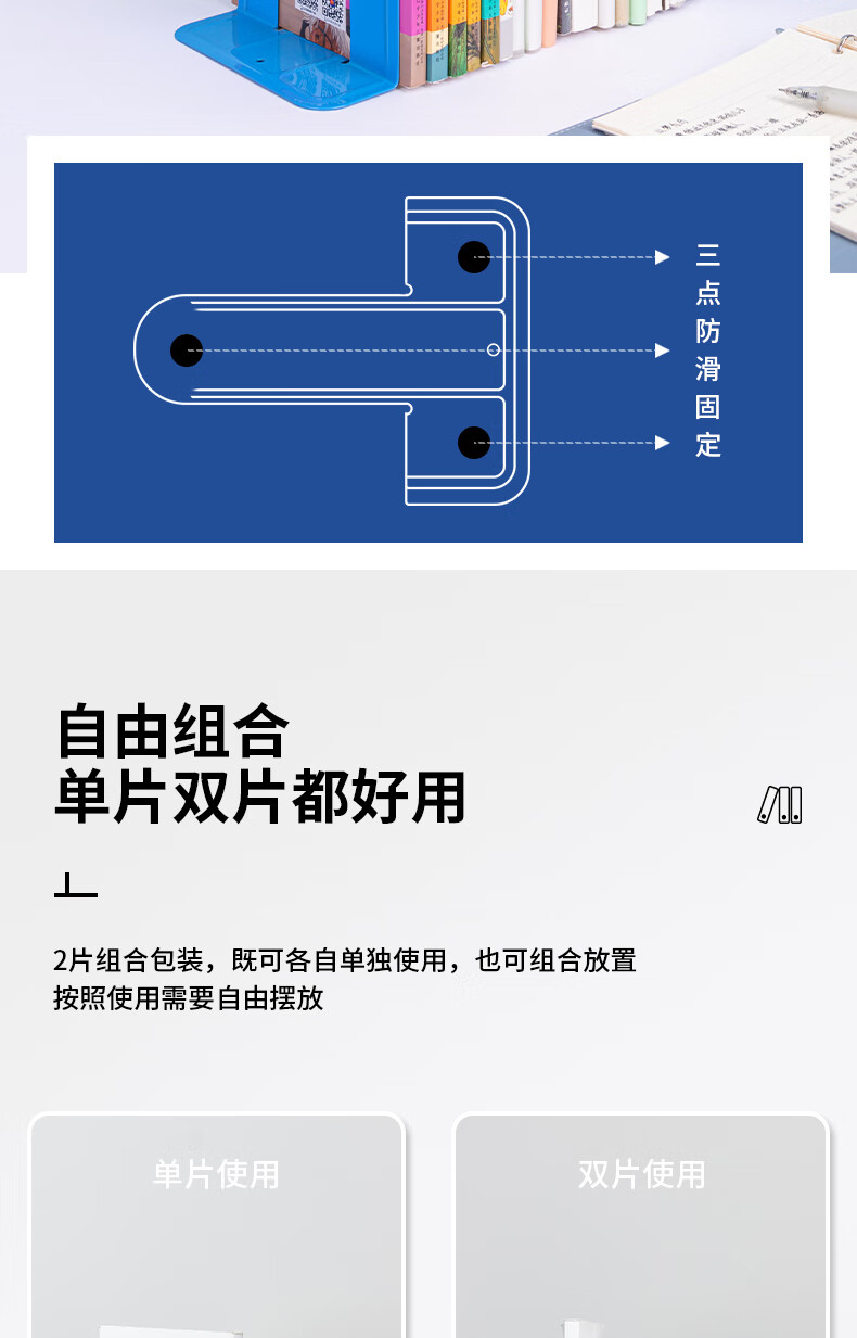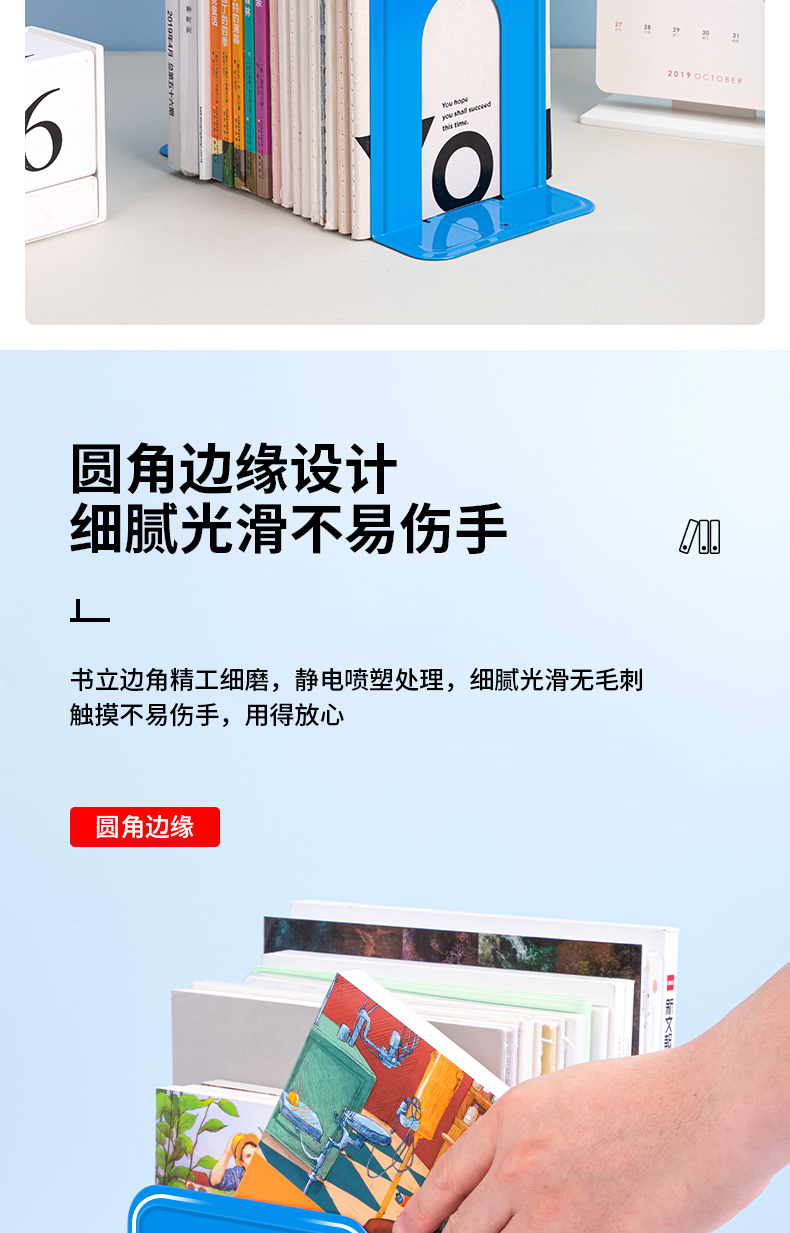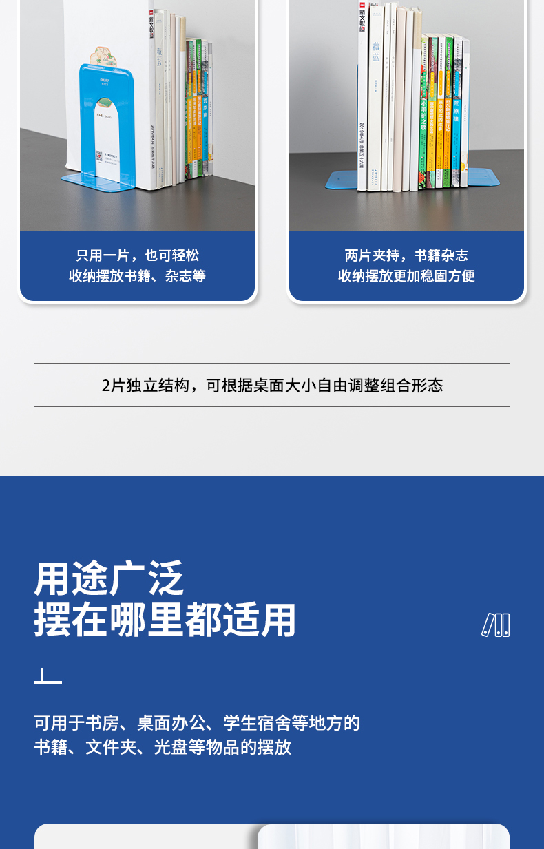 得力(deli)7英寸(高17cm)金属铁桌面书立 蓝色9272 2片/付 单位:付 蓝色