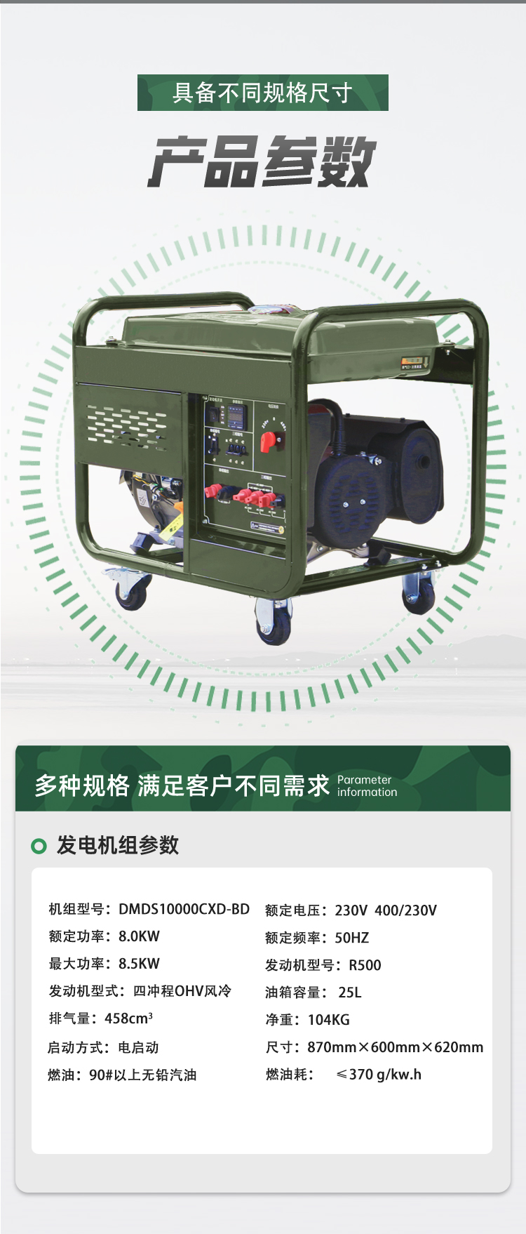 DONMIN东明8kW汽油发电机单三相便携式发电机 DMDS10000CXD-BD台 军绿色