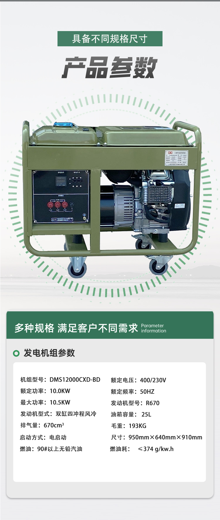 DONMIN东明 三相10千瓦野外露营训练便携发电机DMS12000CXD-BD 台 军绿色