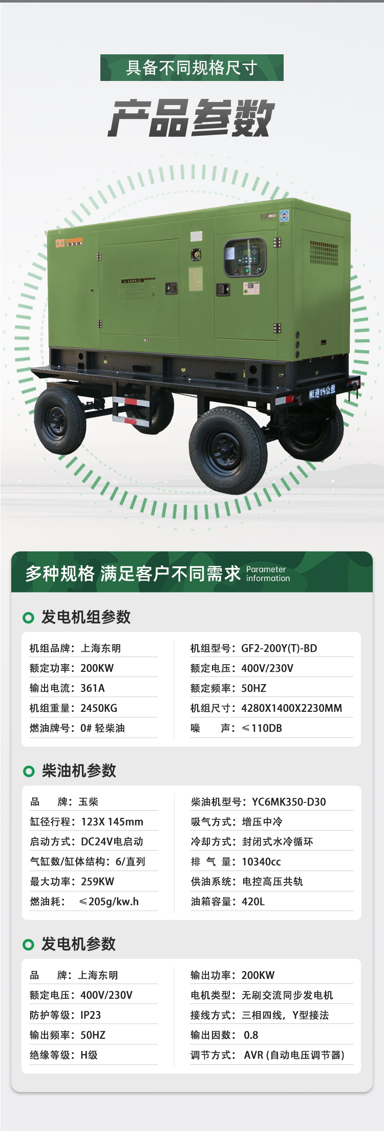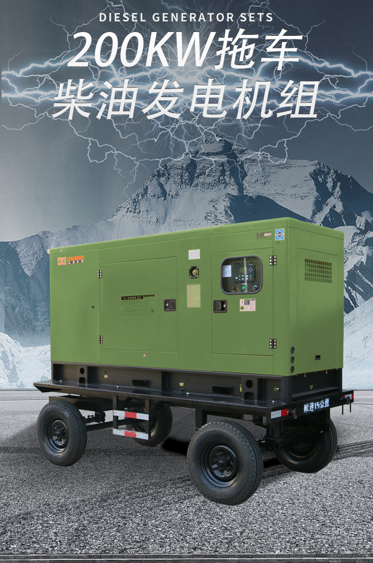 东明DONMIN 200KW低噪音应急备用拖车柴油发电机 GF2-200Y(T)-BD台 军绿色