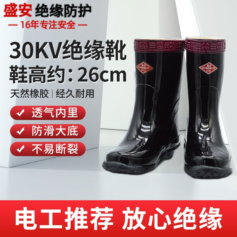 盛安 劳保绝缘鞋绝缘靴30KV电工鞋绝缘雨靴橡胶鞋42码(单位:双) 黑色