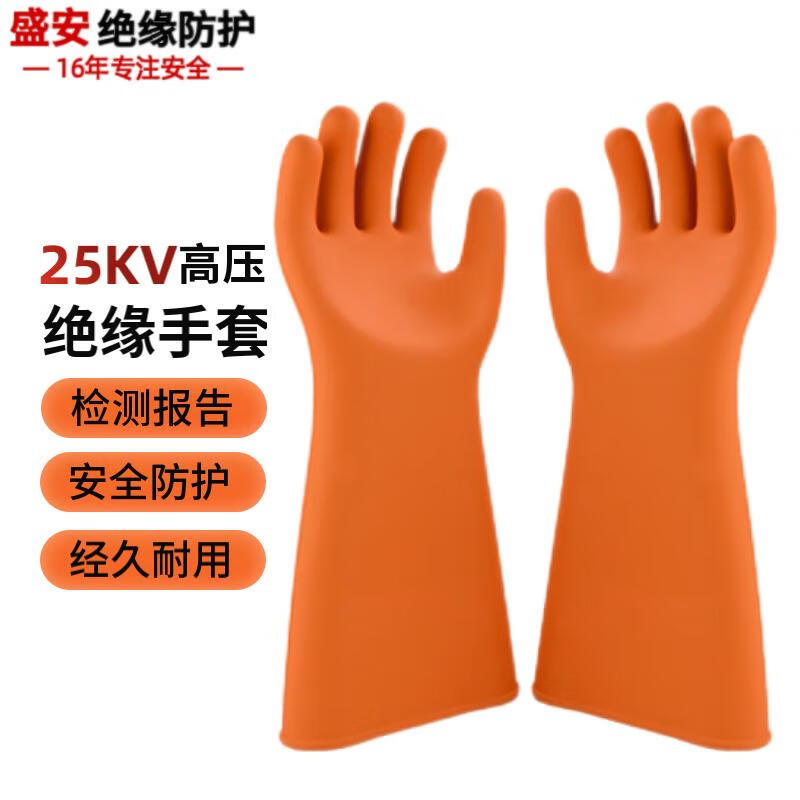 盛安绝缘手套带电作业高压电工电力安全 25kv手型(单位:双) 橙色