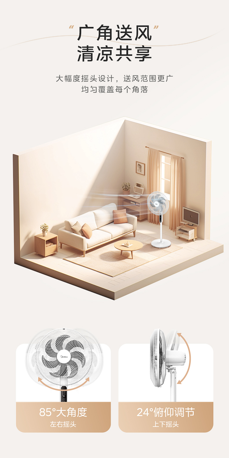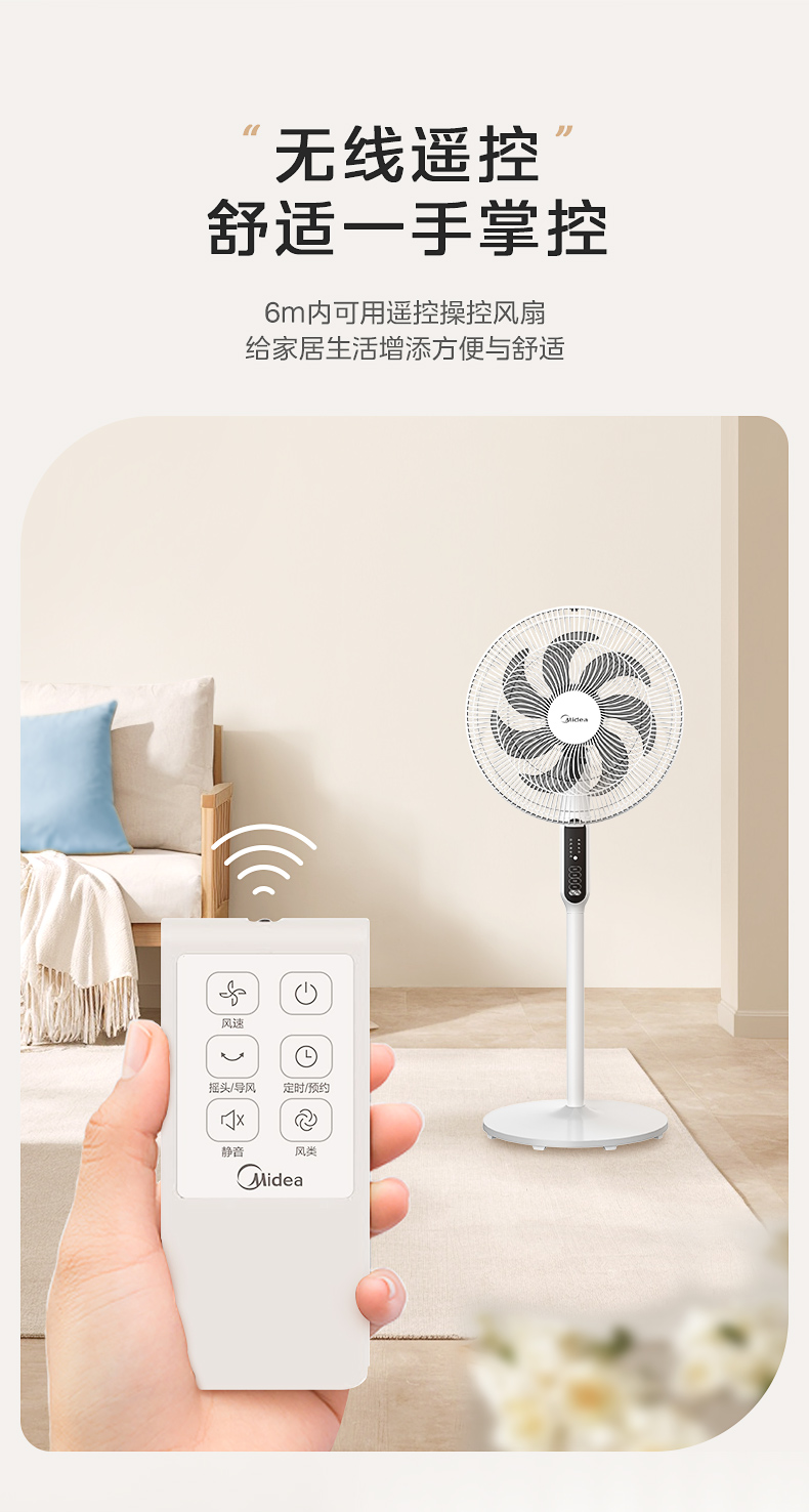 美的(Midea)七叶大风量遥控落地扇SAC35BR(单位:台) 白色