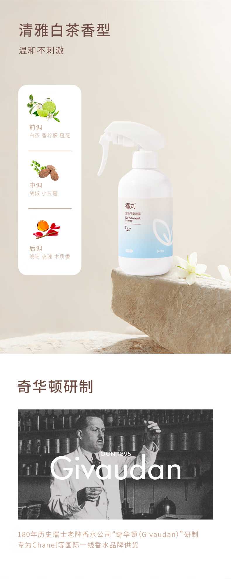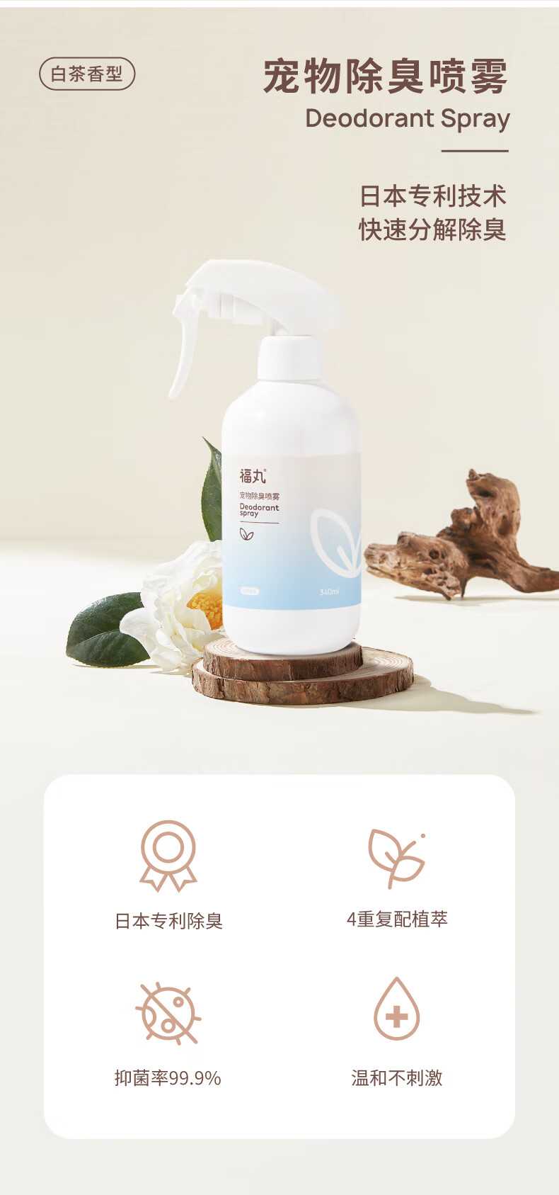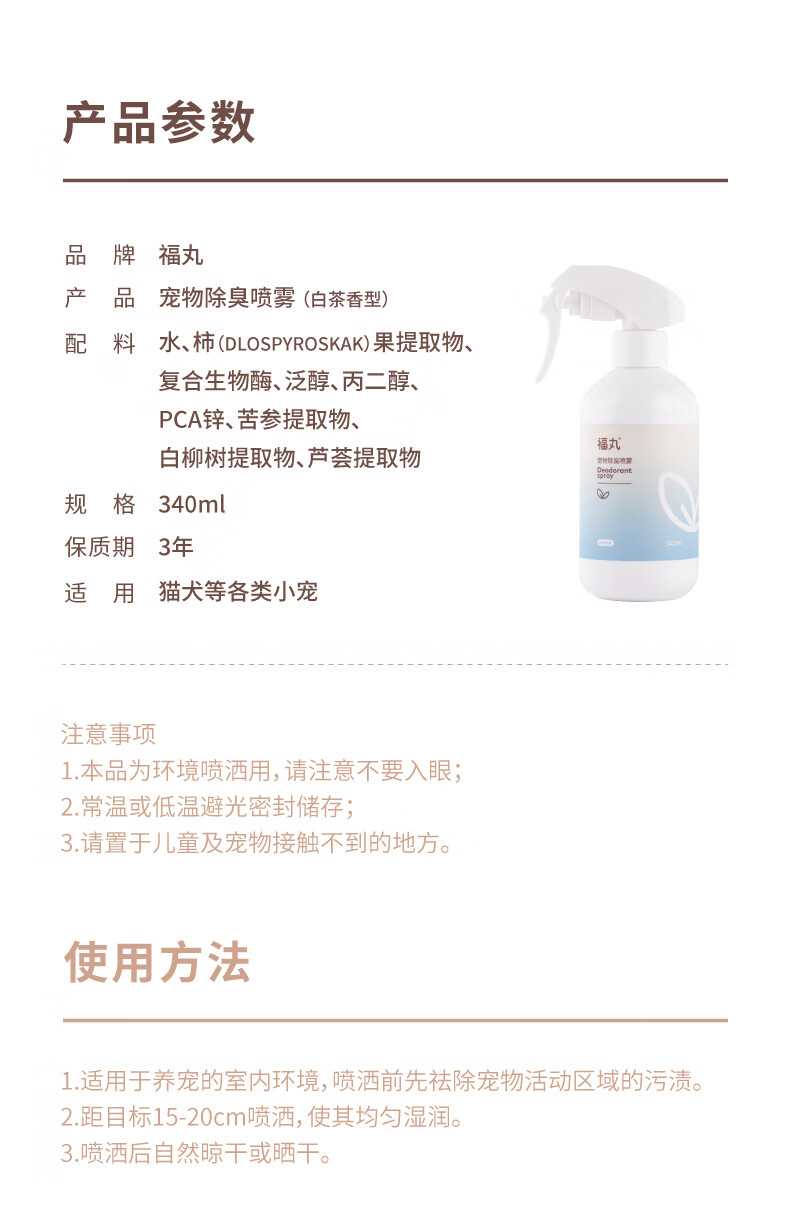 福丸宠物除臭喷雾猫尿便后生物酶除味剂白茶香型猫狗通用(单位:瓶) 340ml