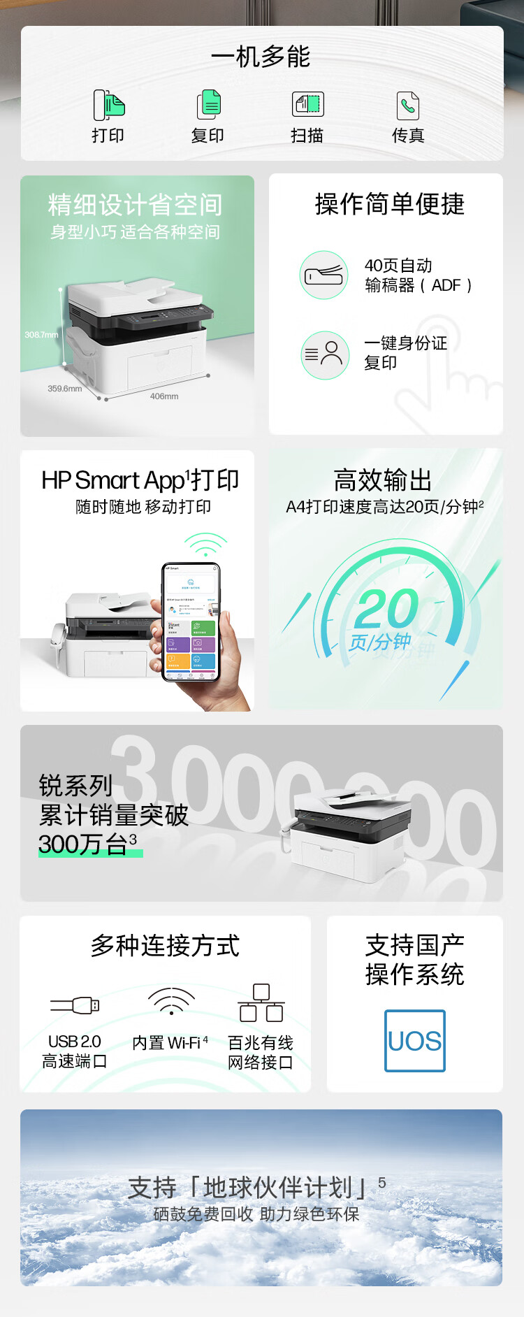 惠普(HP)M128fw黑白激光打印机 无线打印复印扫描传真 升级型号为1188pnw 单位/台 白色