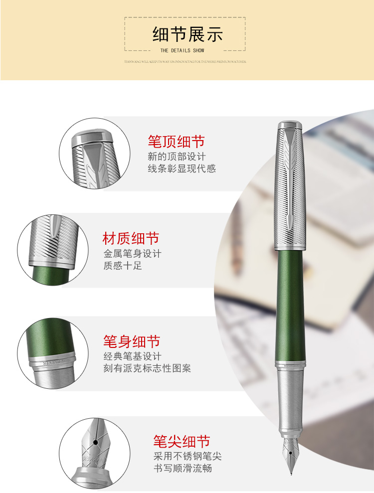 派克(PARKER)钢笔 签字笔 商务办公送礼 男女生日礼物学生练字书法礼品文具都市森林寄语墨水 套 松石绿