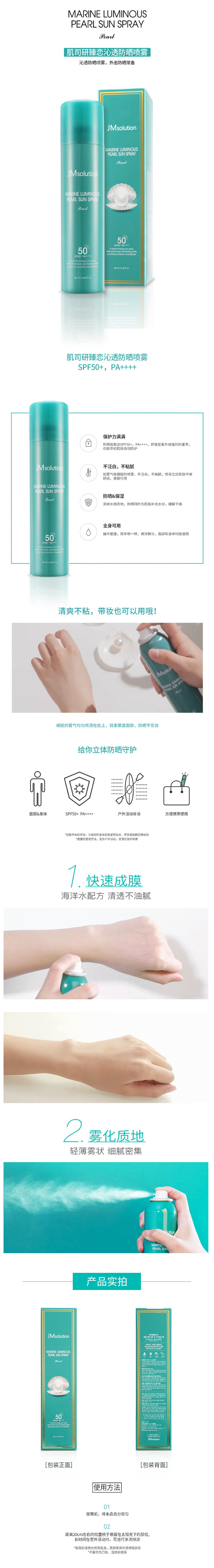 JMsolution肌司研海洋珍珠全身防晒喷雾SPF50+ 180ml/瓶(单位:瓶) 拿铁色