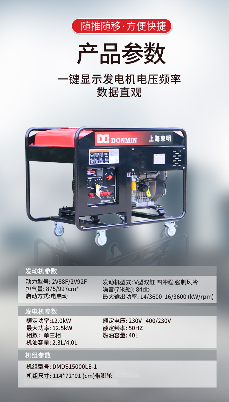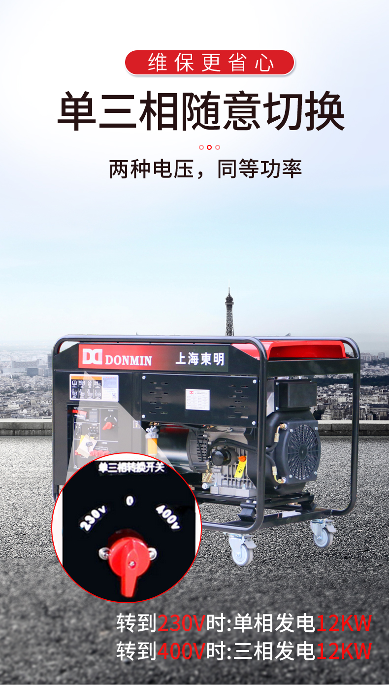 东明DONMIN 单三相12KW应急施工通信柴油发电机DMDS15000LE-1 台 黑色