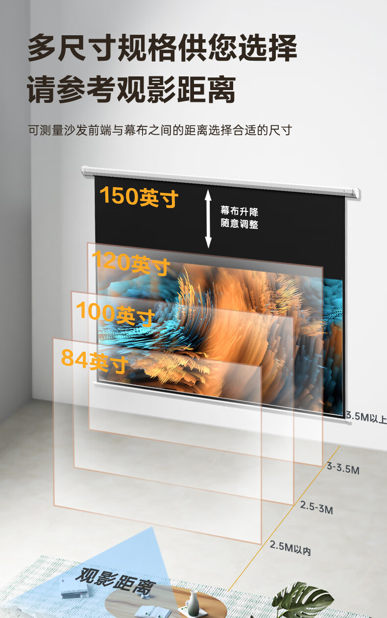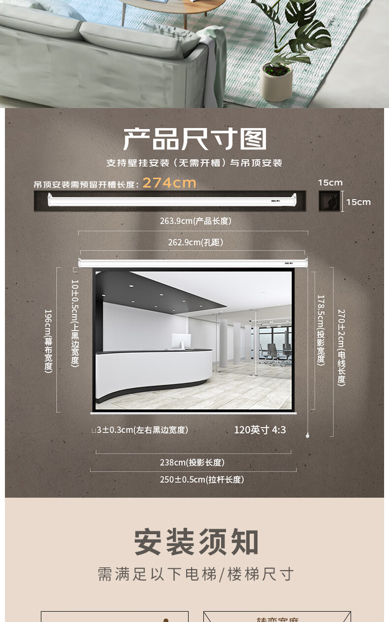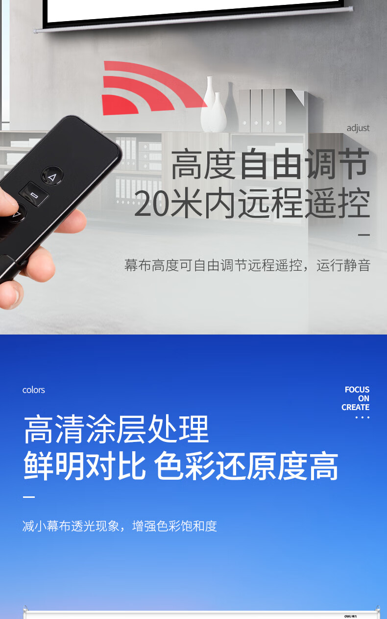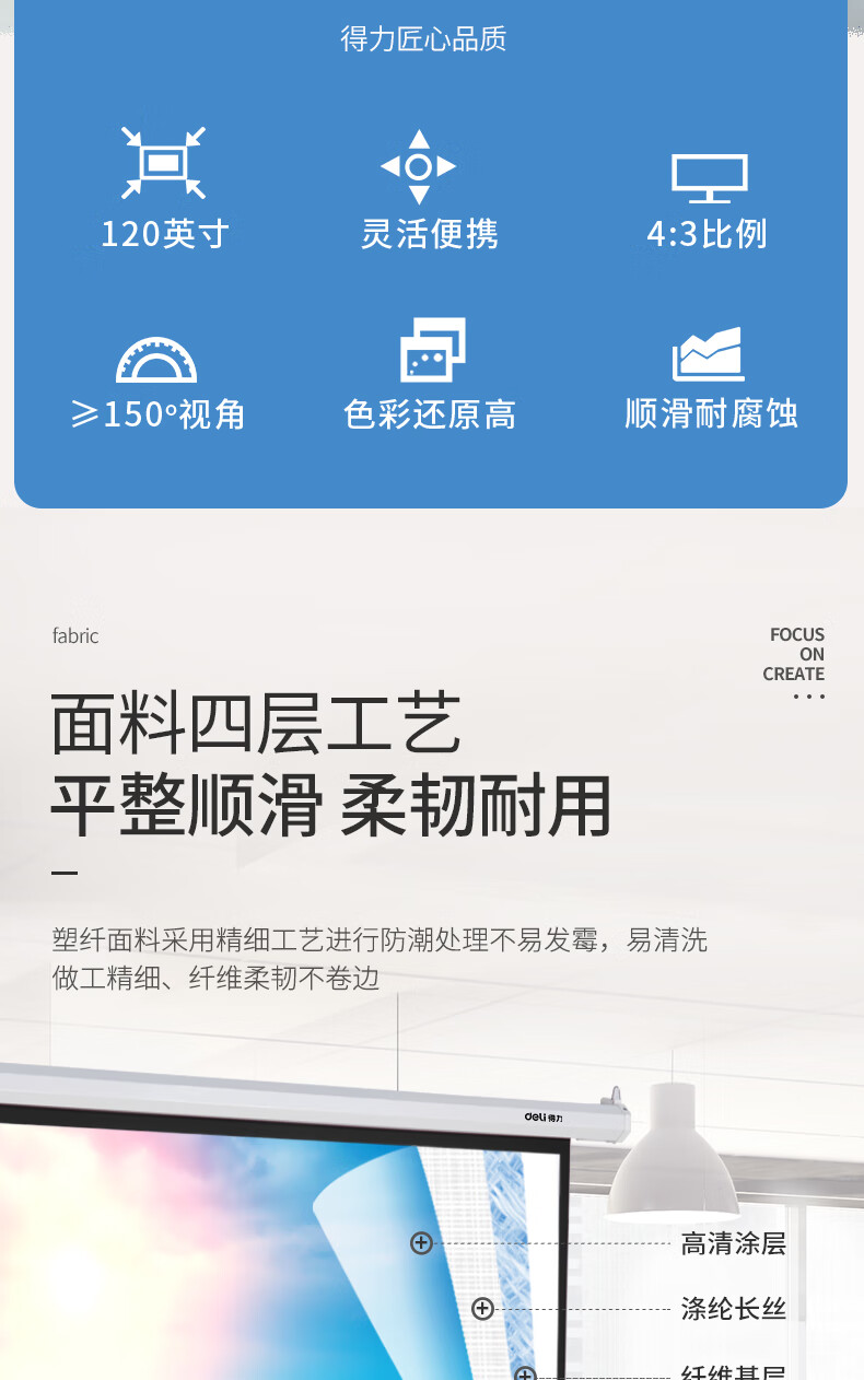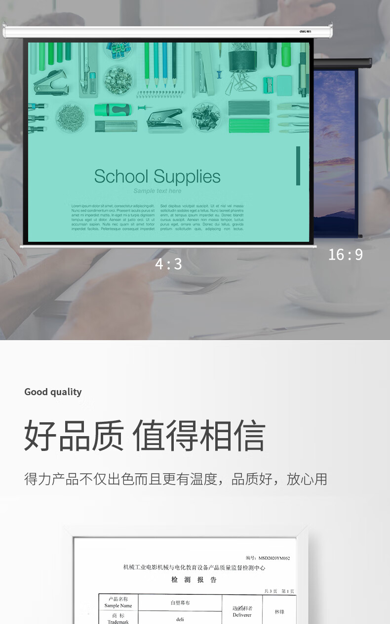 得力(deli)120英寸4:3遥控电动投影幕布投影布 适配坚果极米当贝小米投影机50441 张 黑色