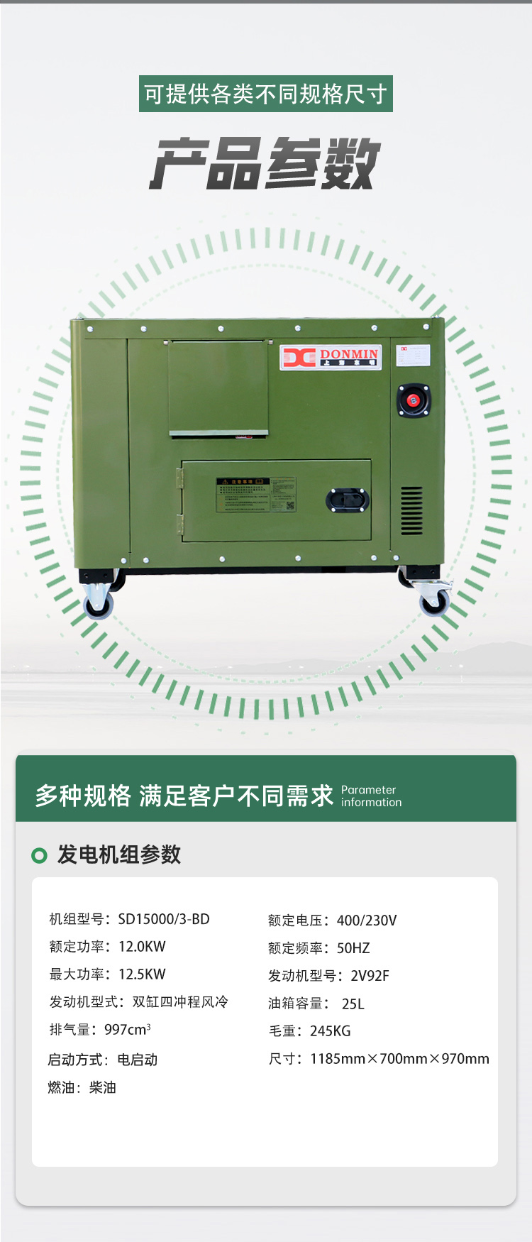 DONMIN东明 12kw三相小型应急户外配套备用柴油发电机 SD15000/3-BD 台 军绿色