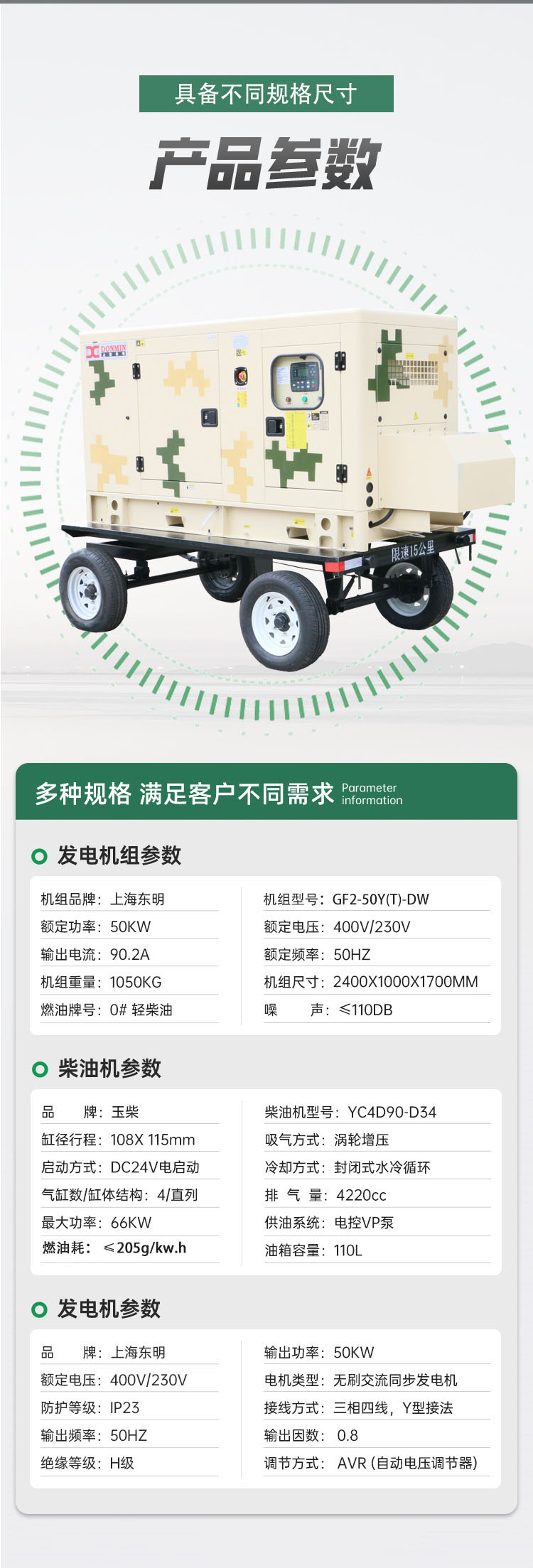 DONMIN东明 50kw低噪音低温启动拖车型应急备用柴油发电机 GF2-50Y(T)-DW 台 白色