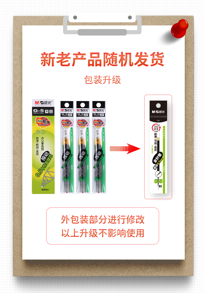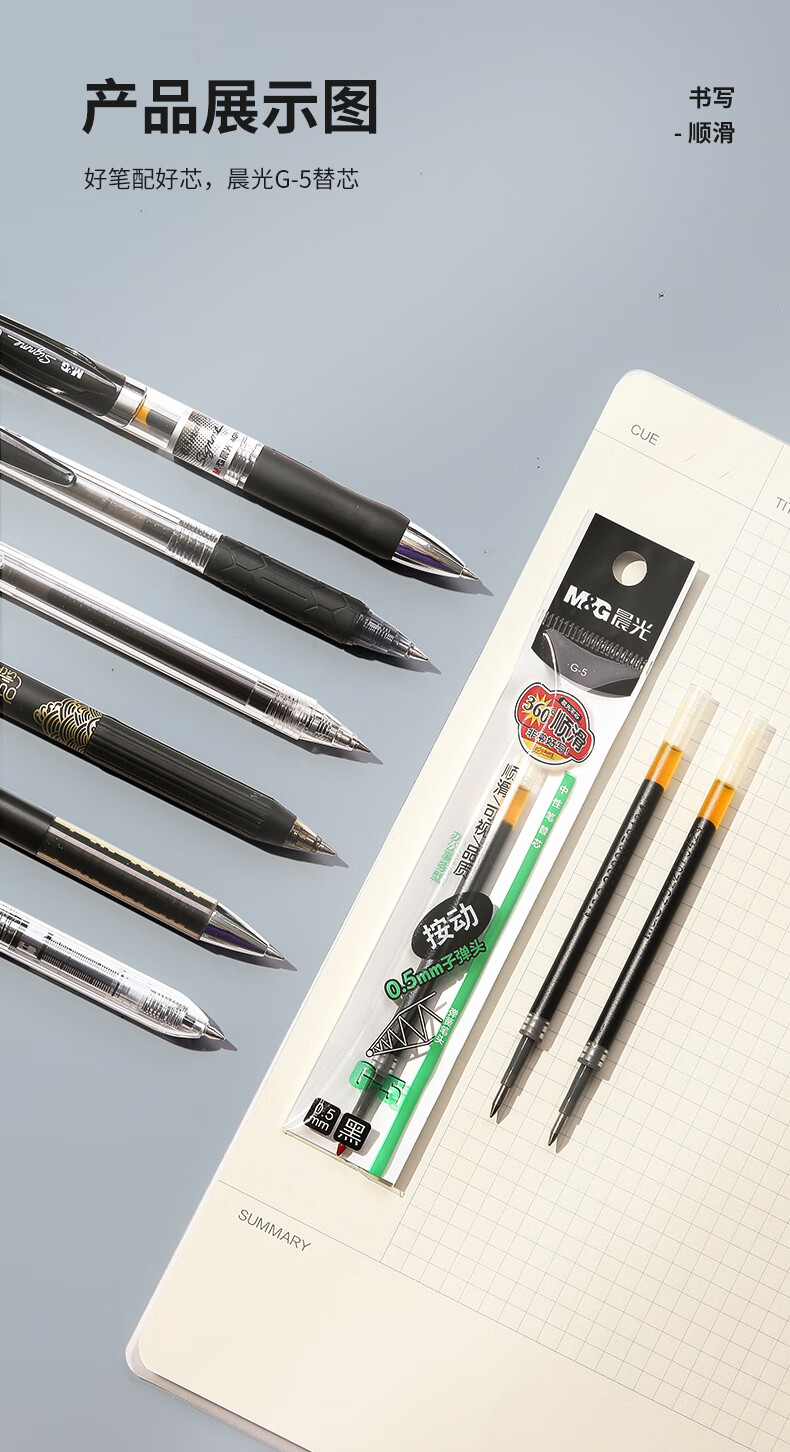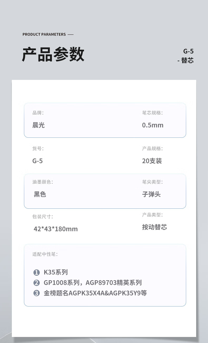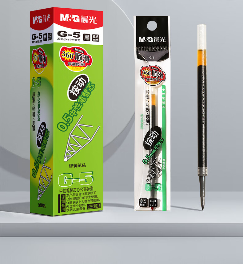 晨光文具G-5黑色0.5mm按动子弹头中性笔芯1008/K35/S01/S08适用20支G-6A 盒 黑色