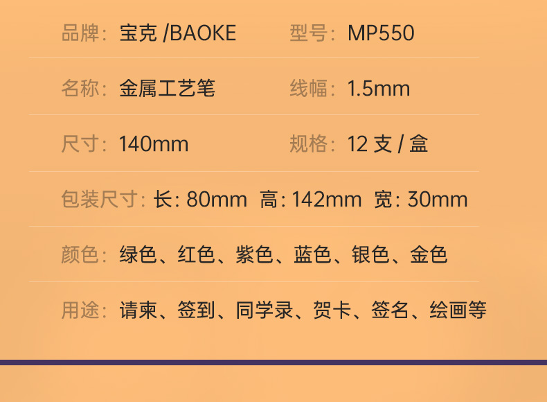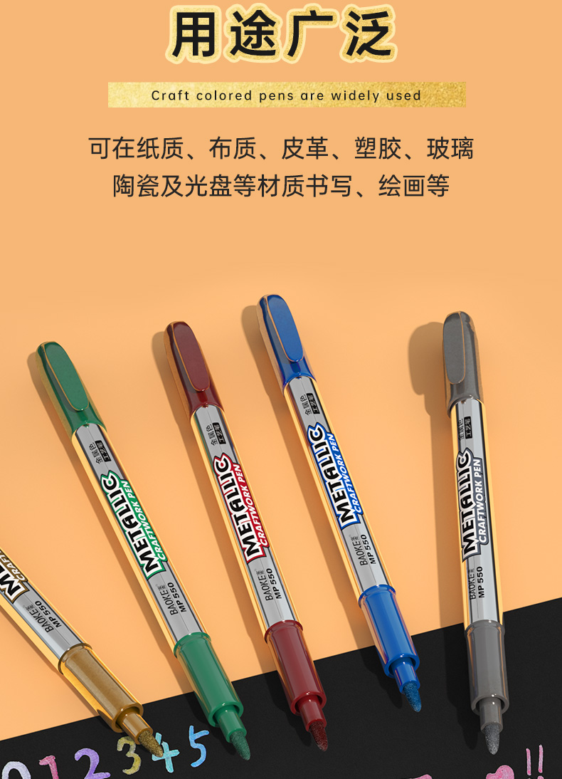 宝克(BAOKE)MP550 1.5mm水性油墨金属工艺笔 DIY彩色笔/绘画记号笔 12支/盒 盒 红色