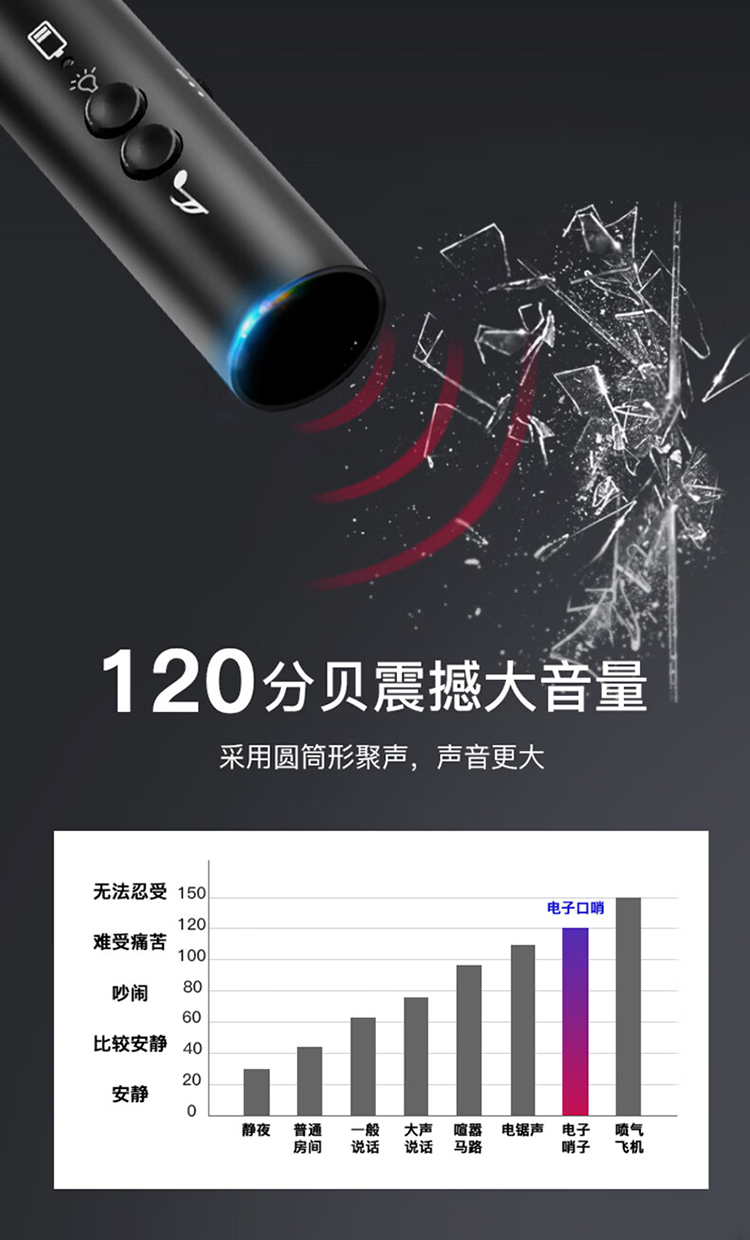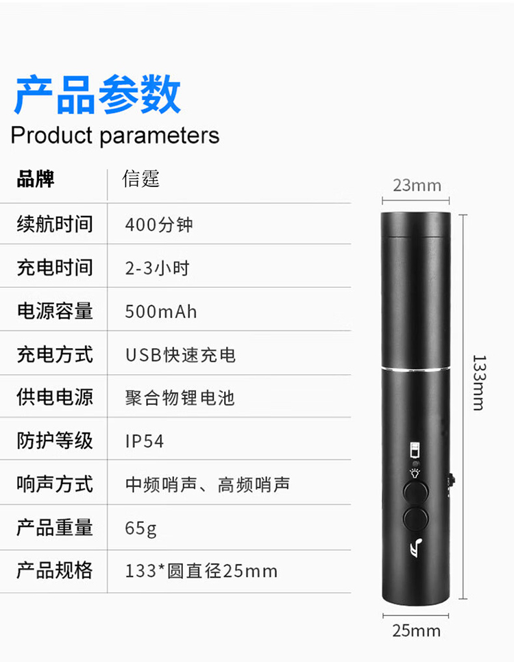 信霆 USB充电款电子口哨 高分贝哨子求生口哨/套 黑色