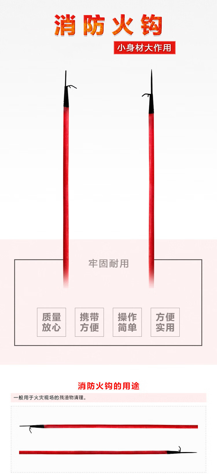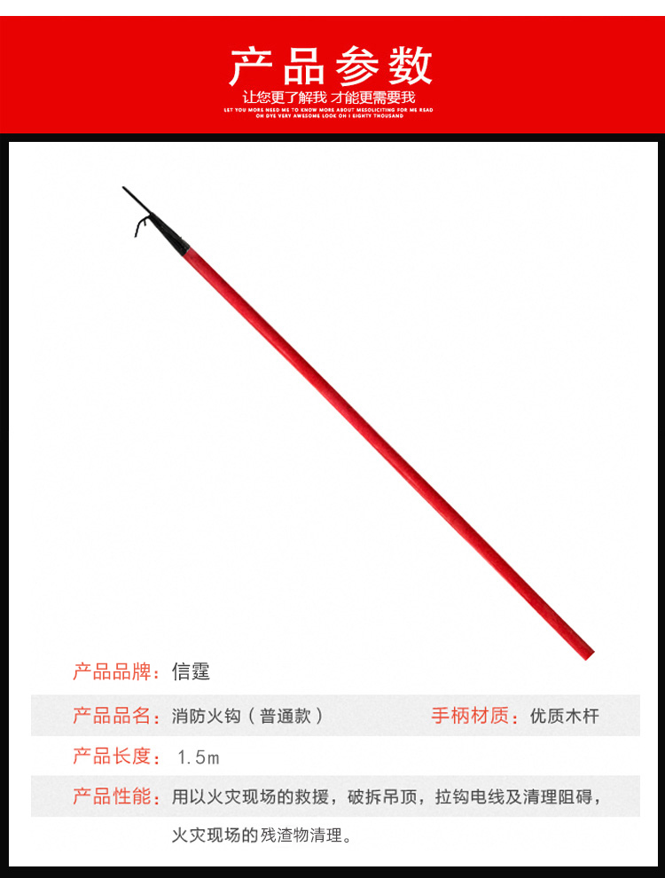 信霆 消防钩救生扑火钩消防器材消防铁钩1.5米根 红色