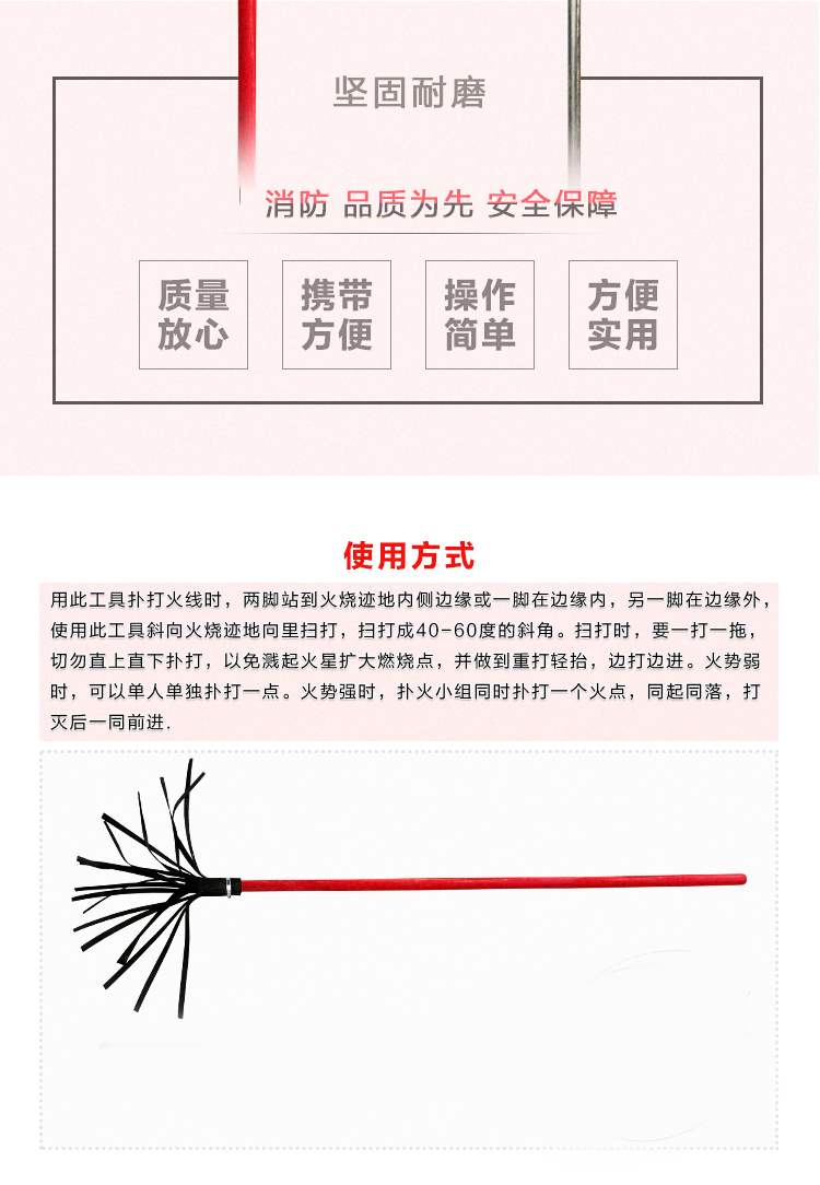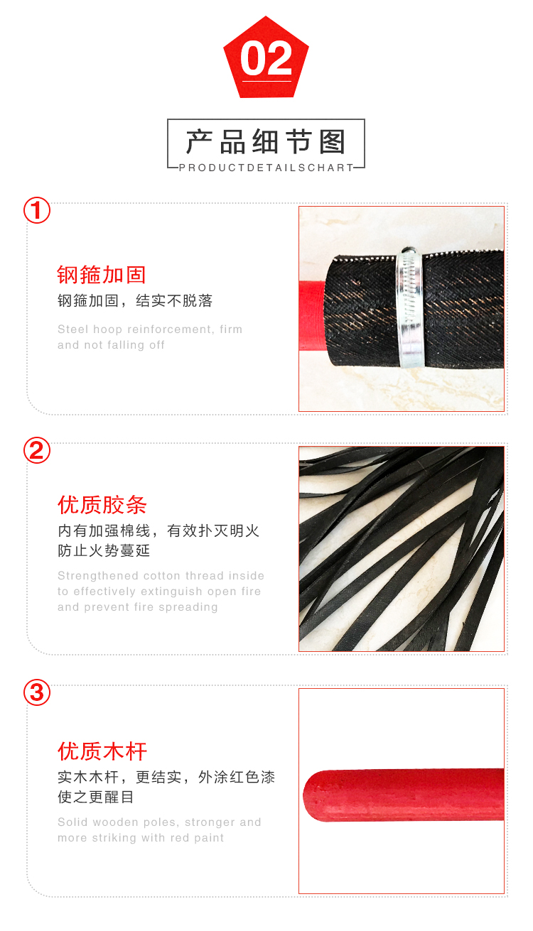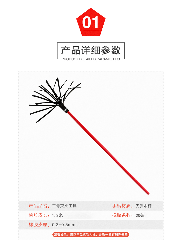 信霆 加厚橡胶条打火鞭2号1.3米杨木(20胶条)扑火工具打火把灭火扫把 红色