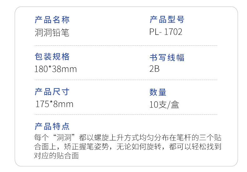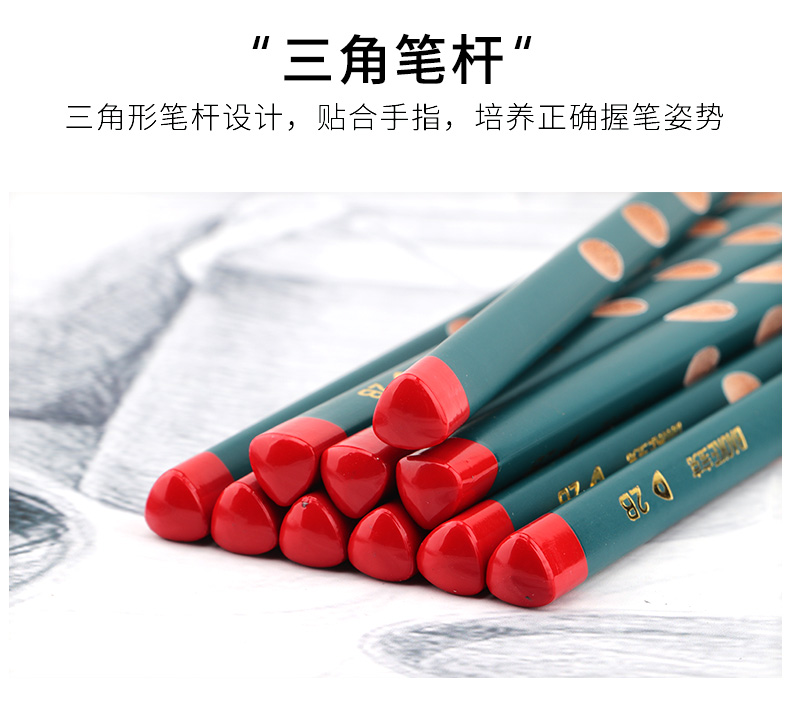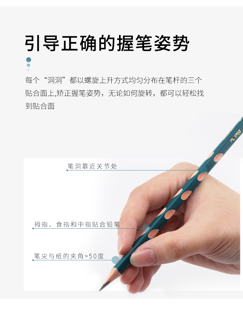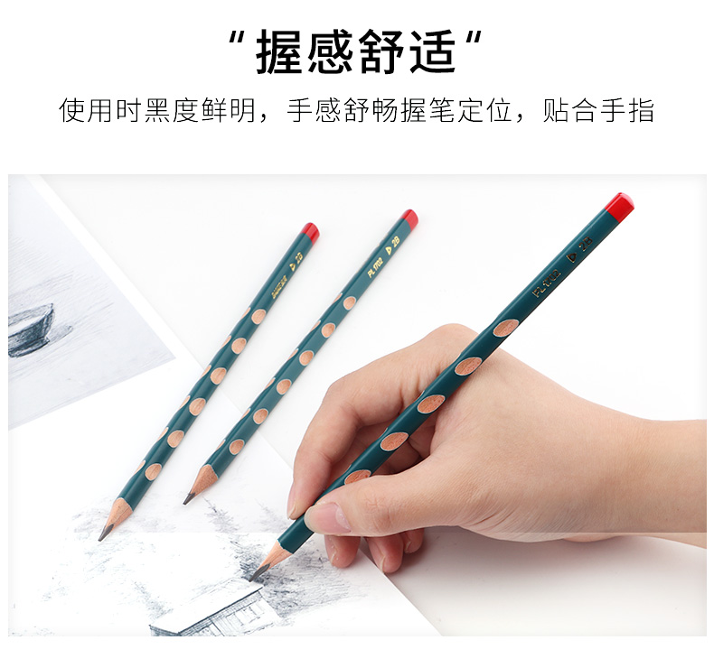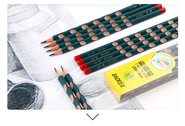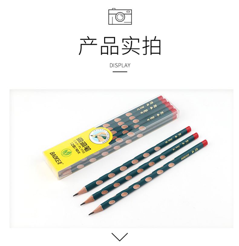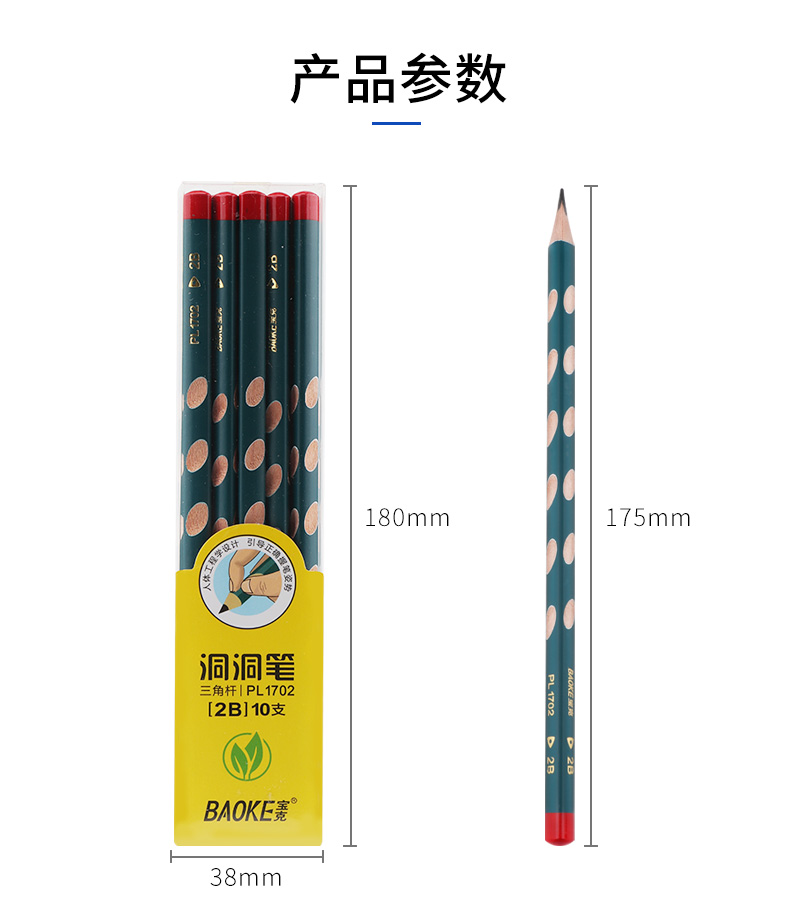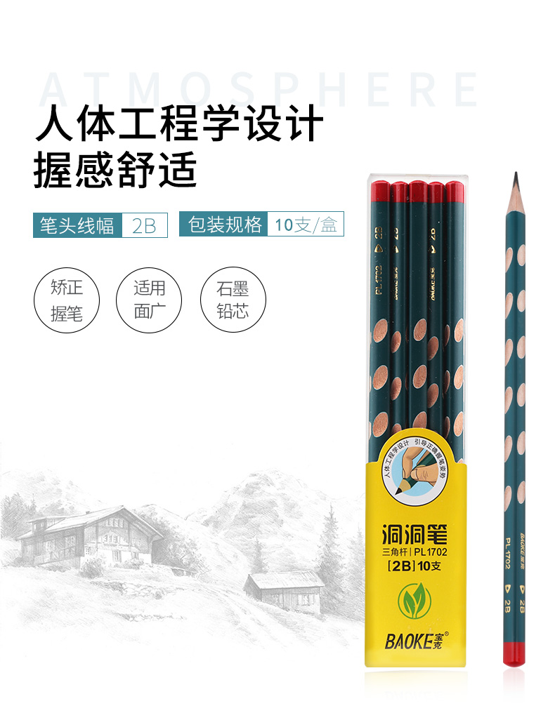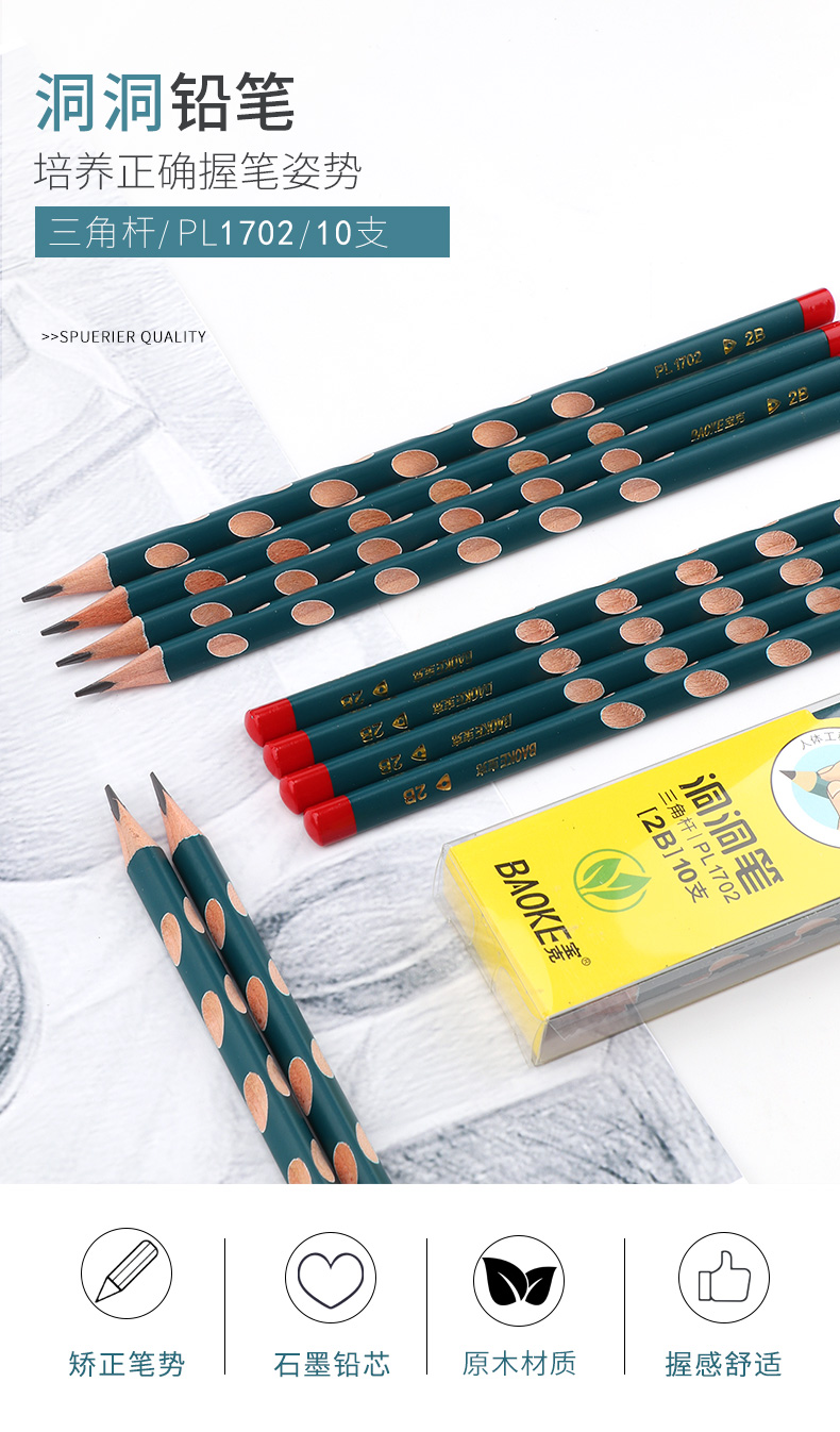 宝克(BAOKE)PL1702 2B三角原木洞洞铅笔 素描绘画美术/儿童学姿矫正书写铅笔 10支/盒 黑色