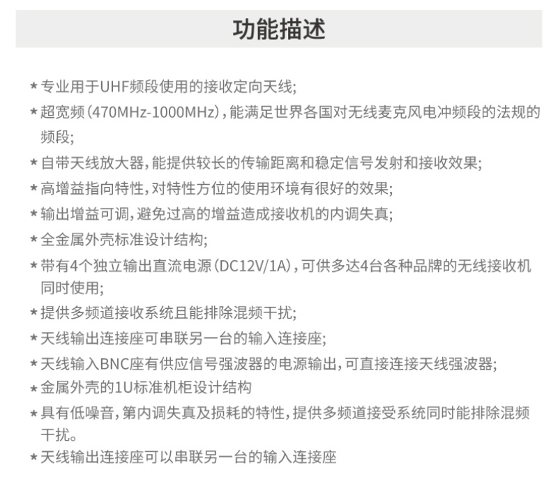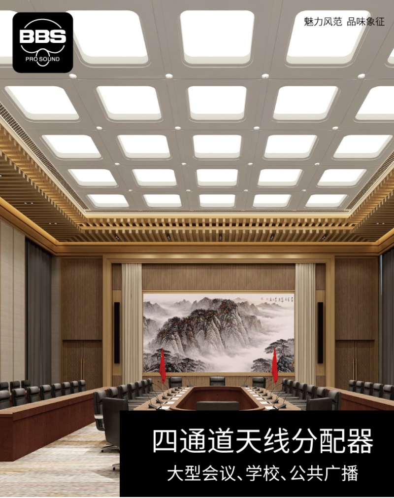 BBS 会议系统无线麦克风信号放大器宽频四通道自动增益控制天线分配器 MA-90 台 黑色