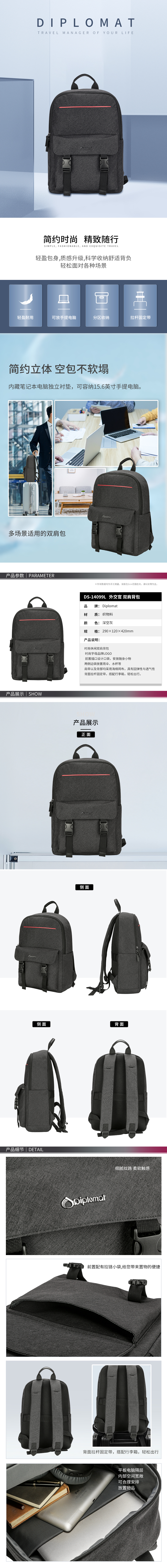 Diplomat外交官 双肩背包DS-14099L(单位:只) 深空灰
