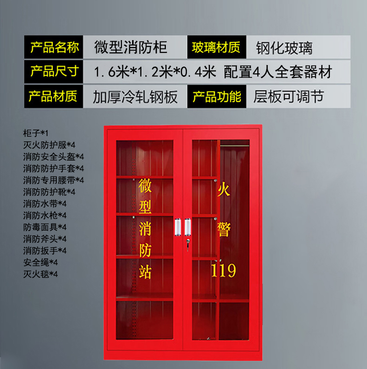 信霆 微型消防站 全套消防应急器材1.6米*1.2米*0.4米 4人配置器材/个 红色