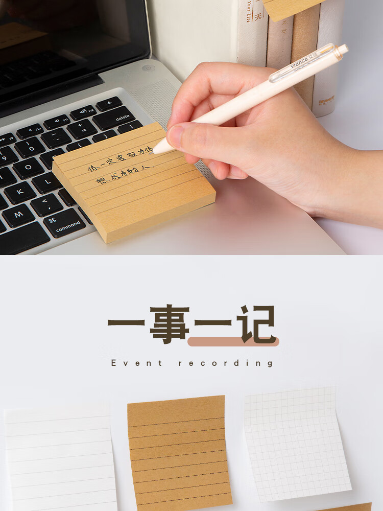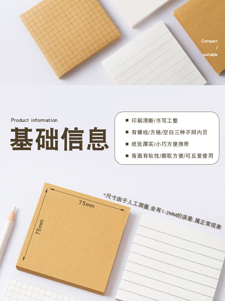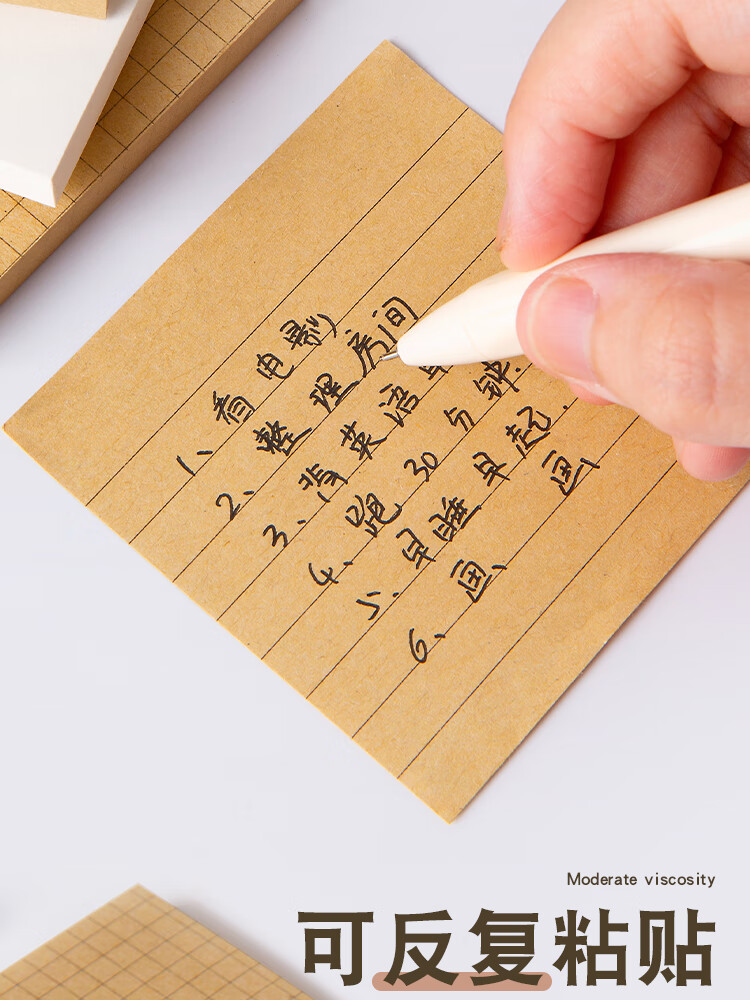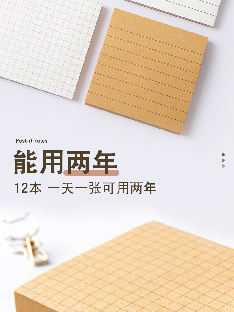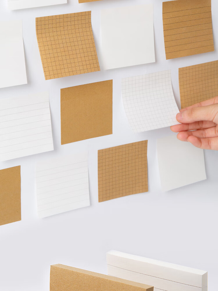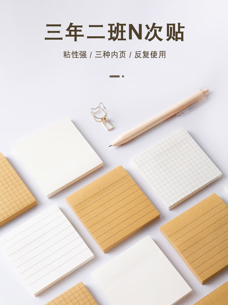 三年二班 纯白色强粘性横线横纹便利贴 学生用简约N次贴便签纸办公用品备忘记事贴/本 本白-方格款
