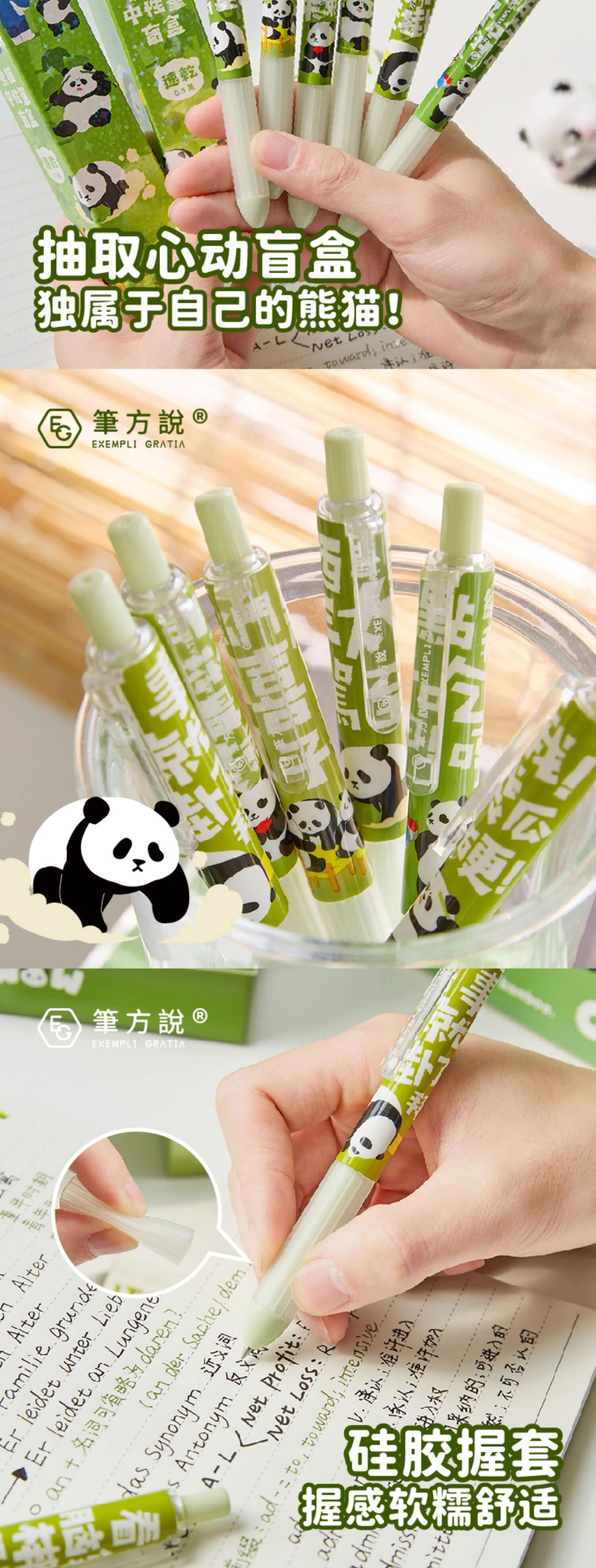 三年二班&笔方说熊猫渐变中性笔盲盒高颜值可爱按动笔学生用速干刷题笔毕业礼物儿童礼物奖励礼品奖品/支 12支礼盒装