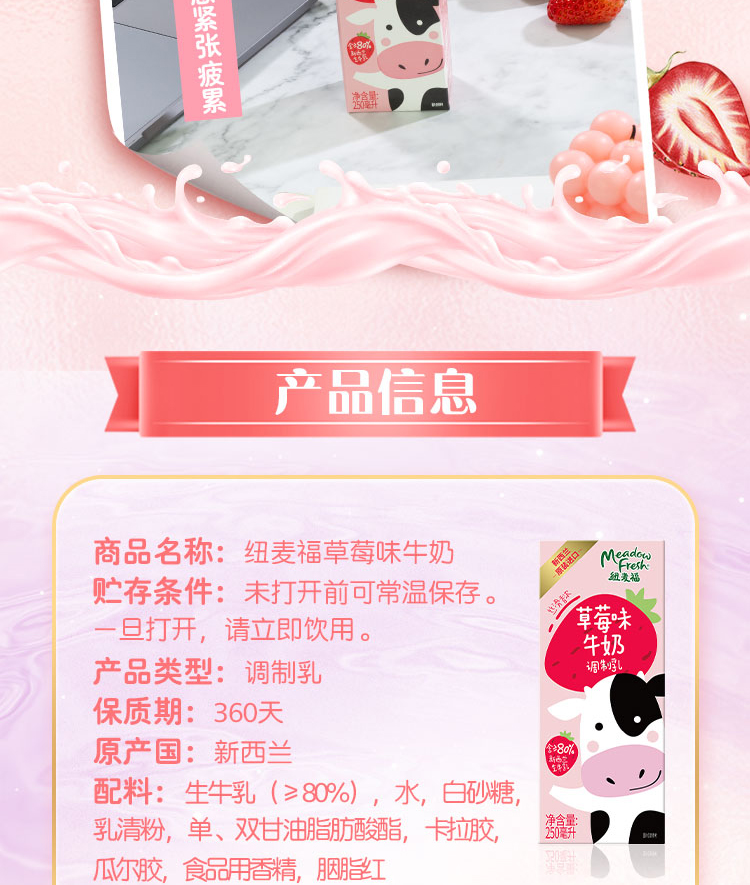 纽麦福草莓味牛奶250ML*24/箱 甜莓味