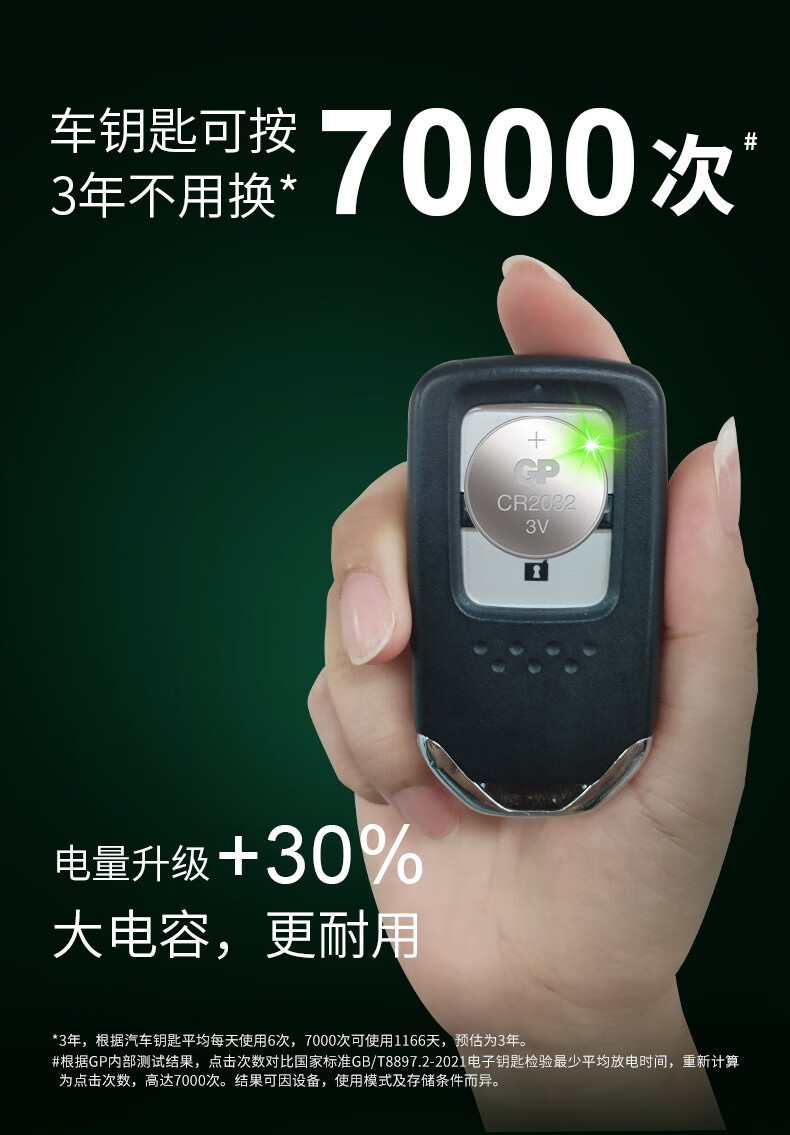 超霸(GP)CR2032纽扣电池5粒3V锂电池 适用大众奥迪现代等汽车钥匙手表遥控器电子秤万年历电子 CR2032-5粒