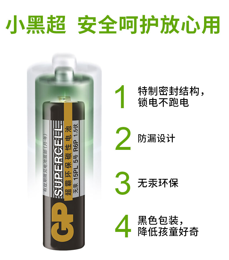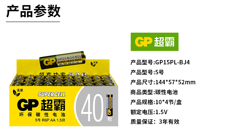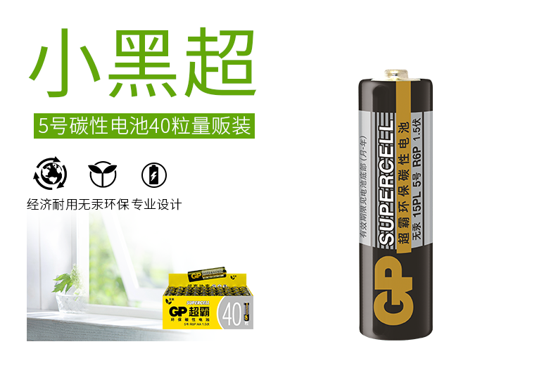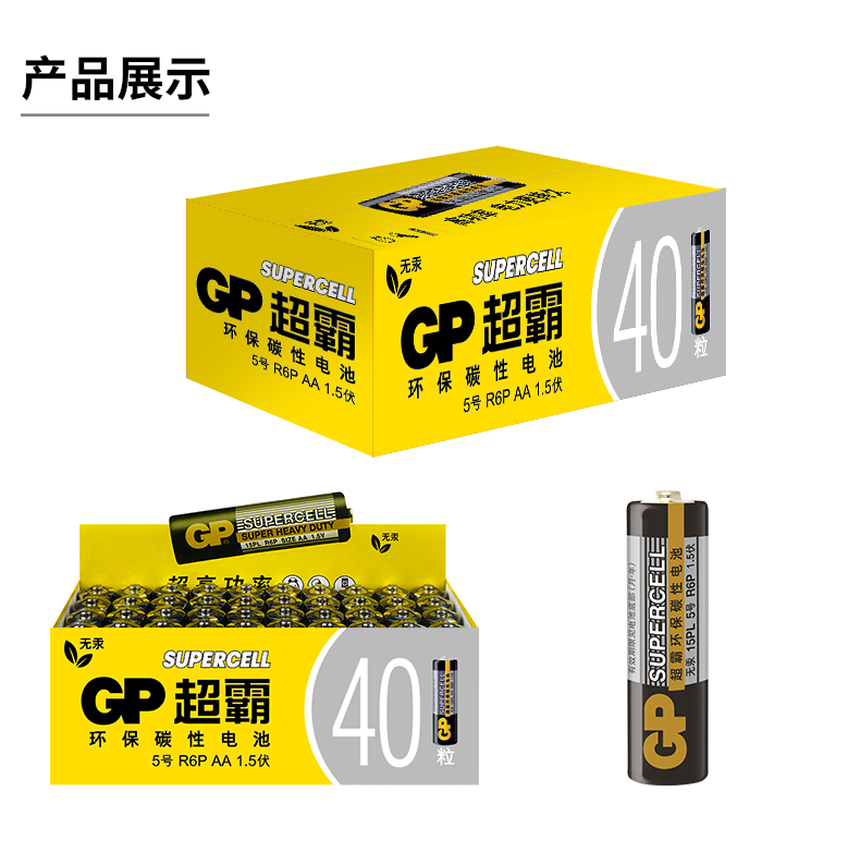 超霸(GP)5号电池40粒五号碳性干电池黑超适用于耳温枪/血氧仪/血压计/血糖仪/鼠标等5号/AA/ Supercell碳性5号40粒