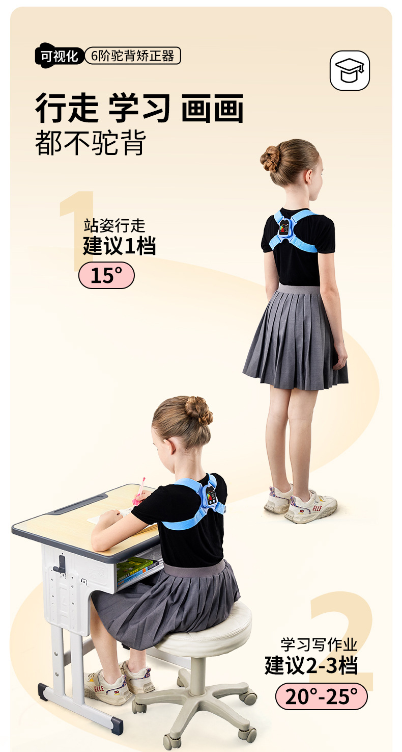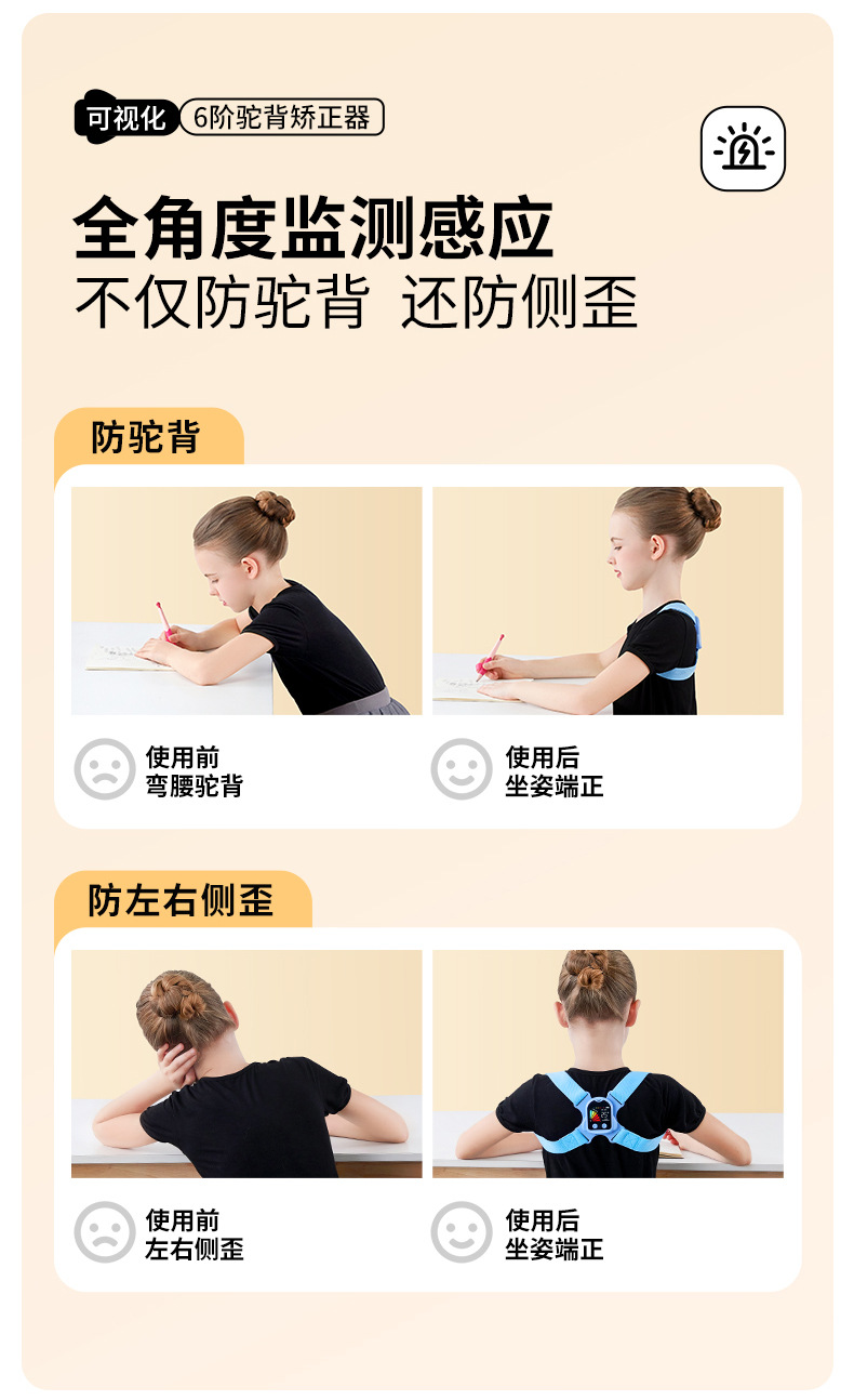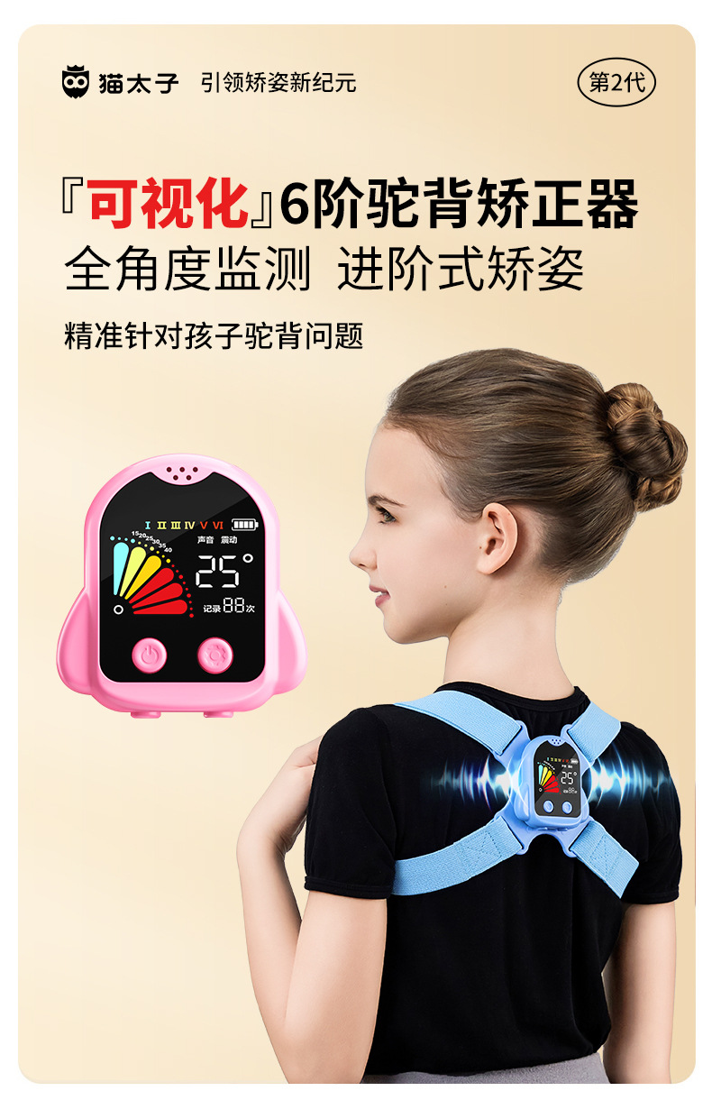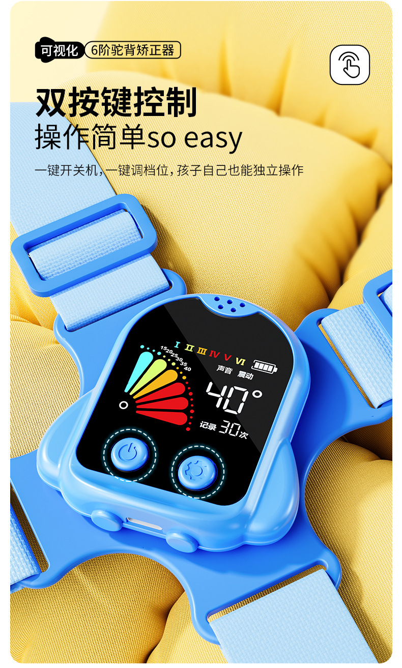 猫太子驼背矫正器背揹佳儿童6到12岁成人小孩纠正儿童矫姿带坐姿矫正器背部矫正器佳矫姿器提醒 个 蓝色