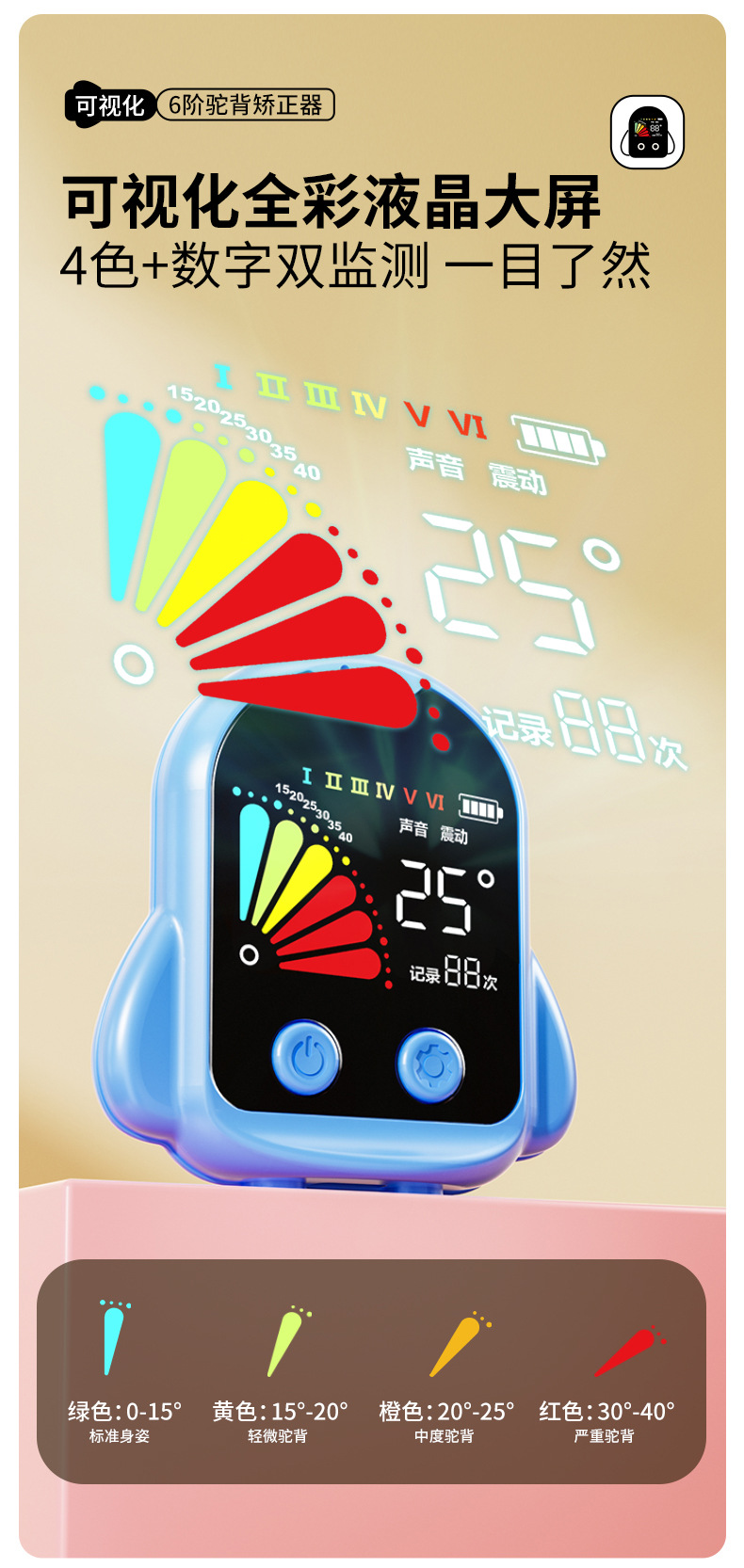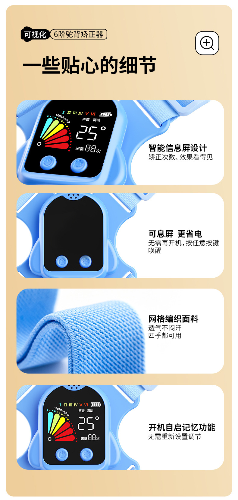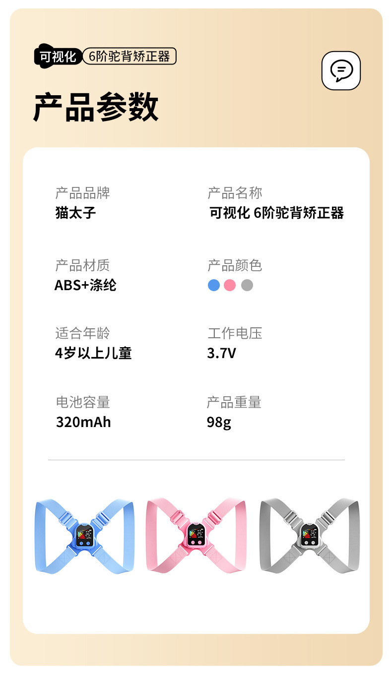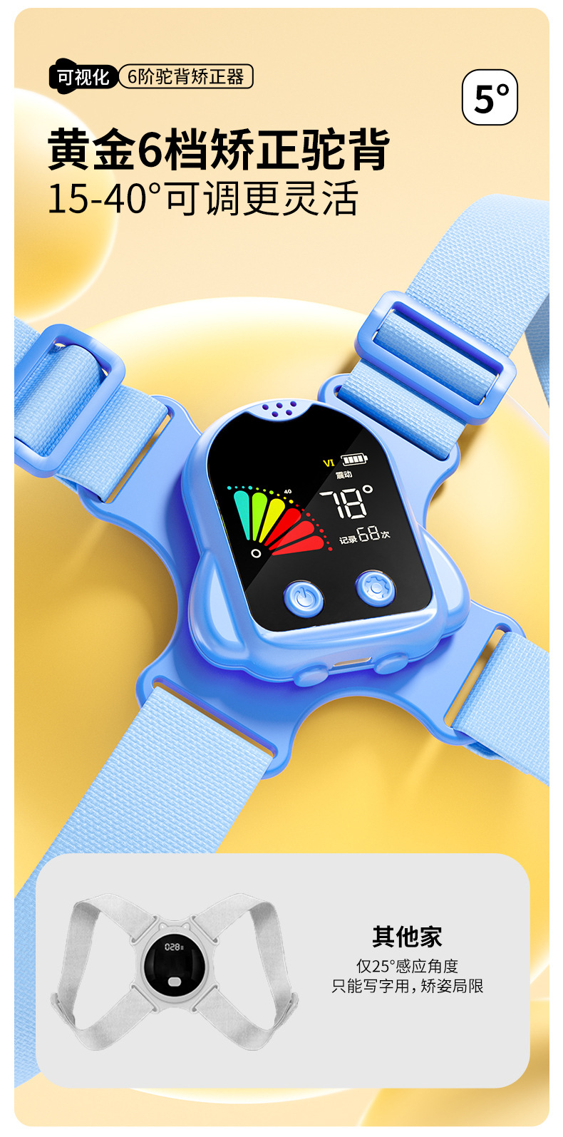 猫太子驼背矫正器背揹佳儿童6到12岁成人小孩纠正儿童矫姿带坐姿矫正器背部矫正器佳矫姿器提醒 个 蓝色