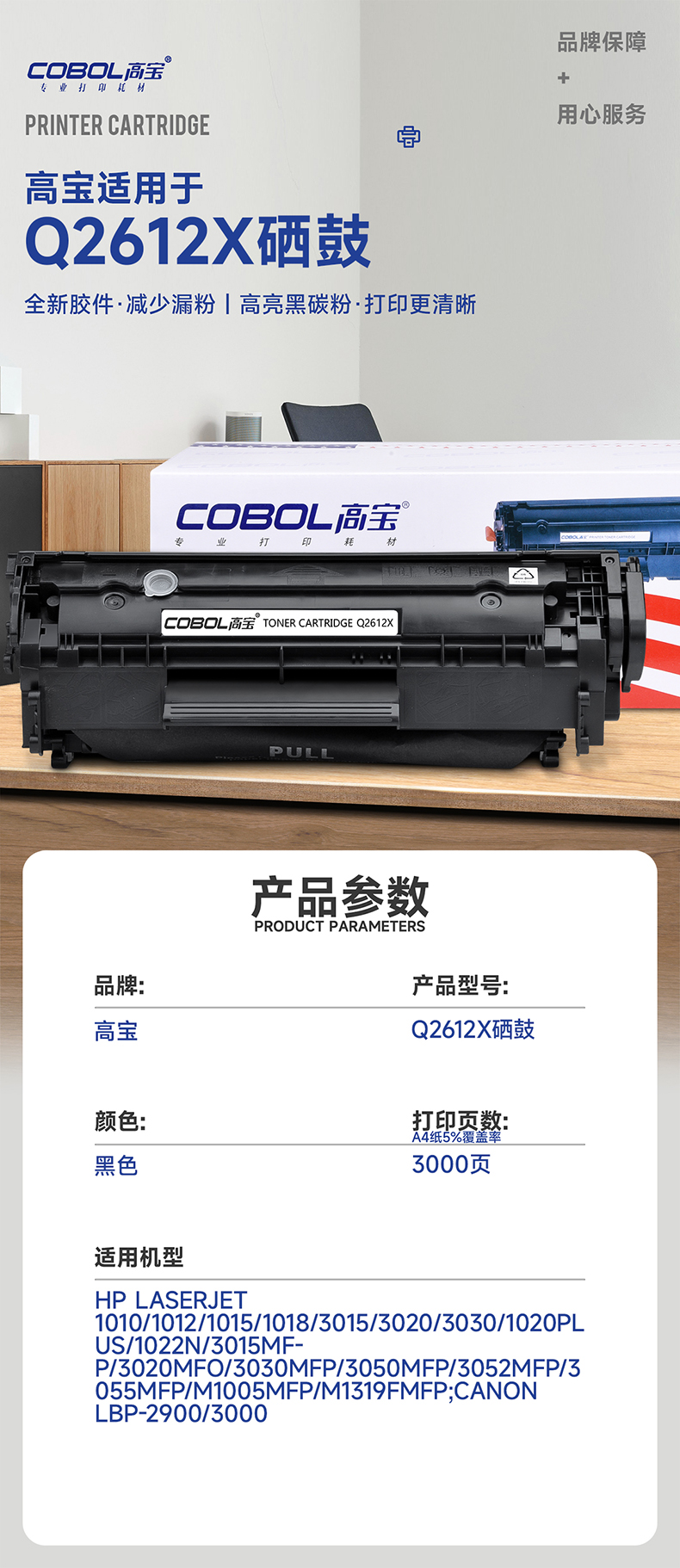 高包 COBOL Q2612X大容量硒鼓适用hp12a m1005墨粉惠普1020 q2612a/个 曜石黑