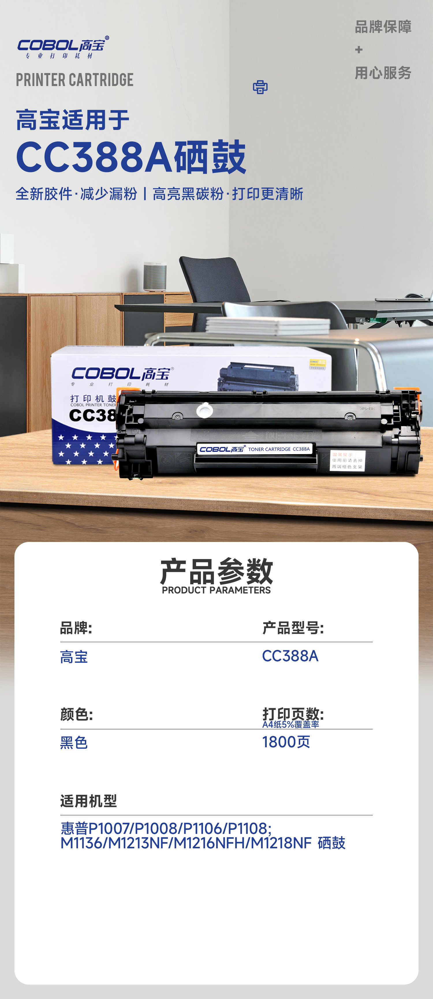 高宝COBOL CC388A硒鼓适用惠普P1007/P1008/P1106/P1108/M113/支 曜石黑