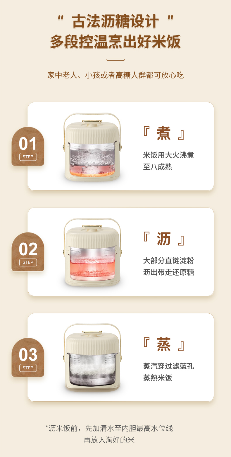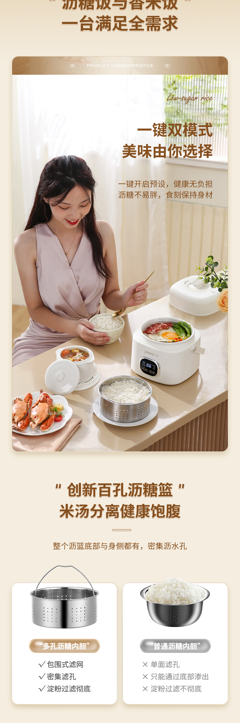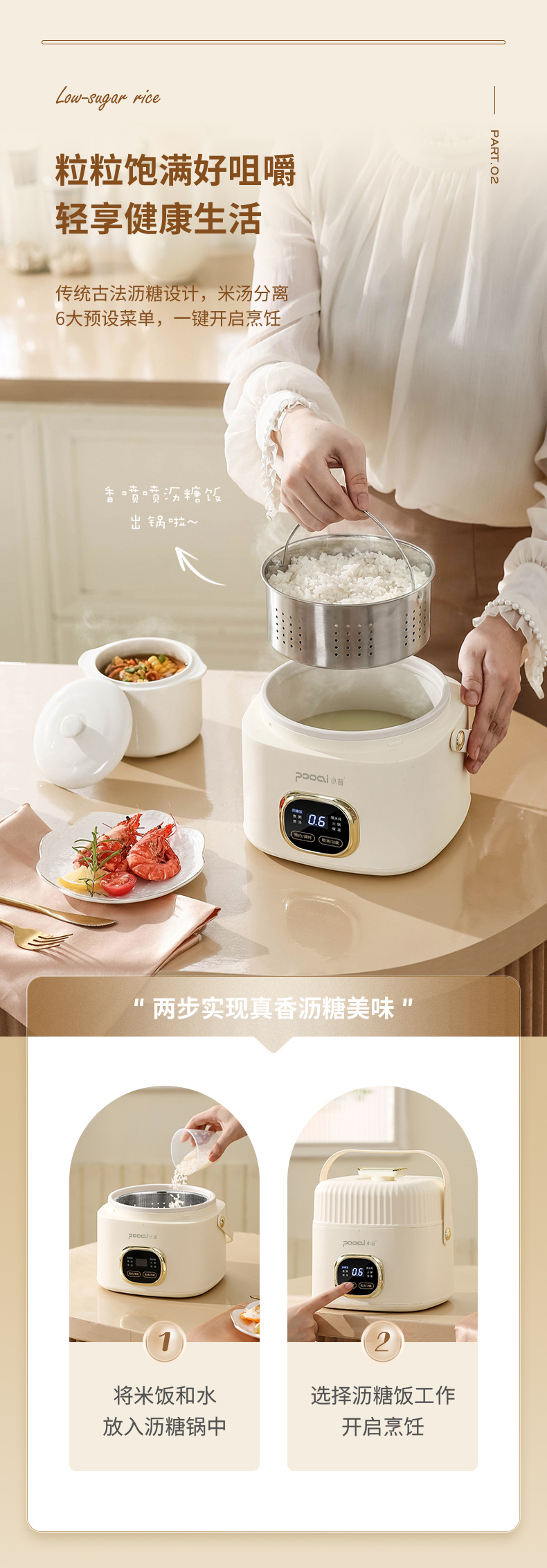 小普(POOAI) XF601B 带沥糖篮、带炖盅 高配带沥糖降糖电饭煲 米黄色,带沥糖篮、炖盅(单位:台)