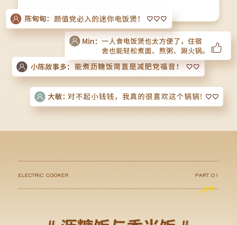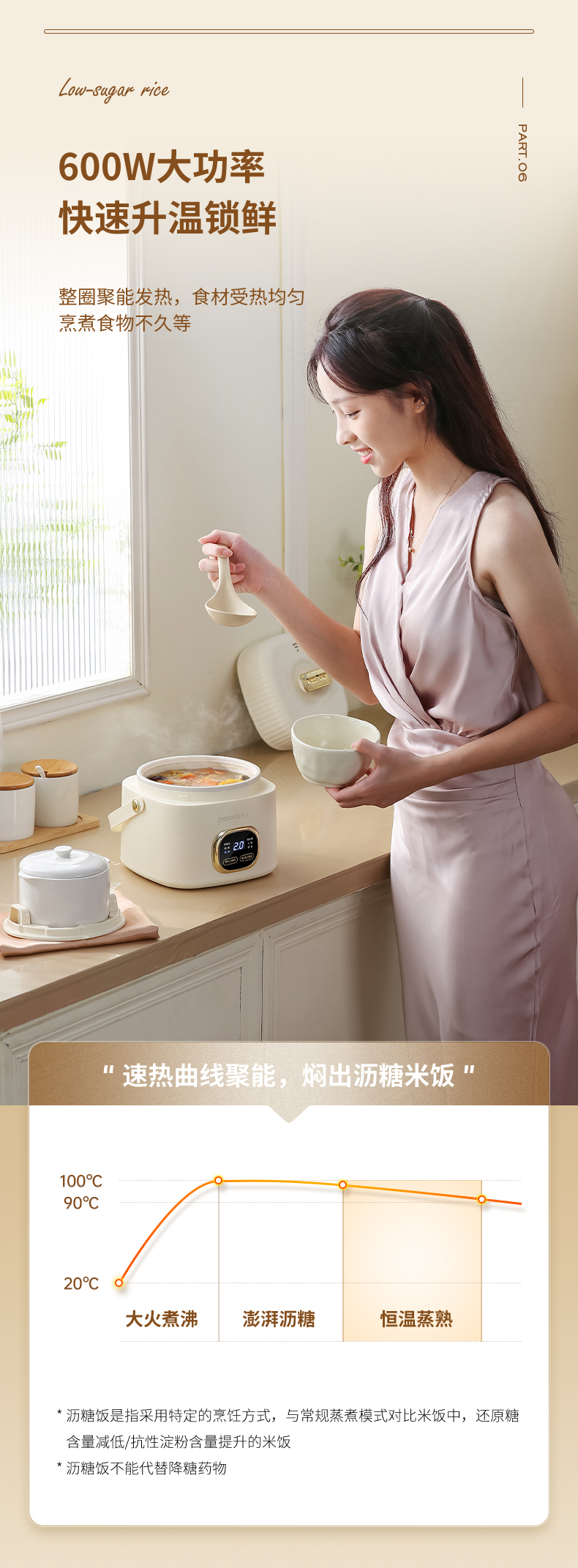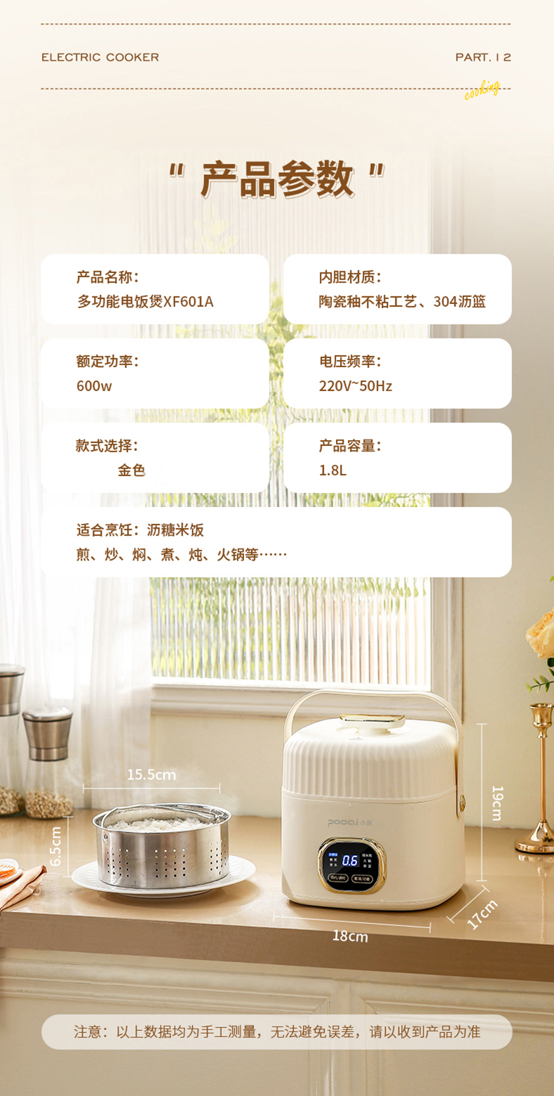 小普(POOAI) XF601B 带沥糖篮、带炖盅 高配带沥糖降糖电饭煲 米黄色,带沥糖篮、炖盅(单位:台)