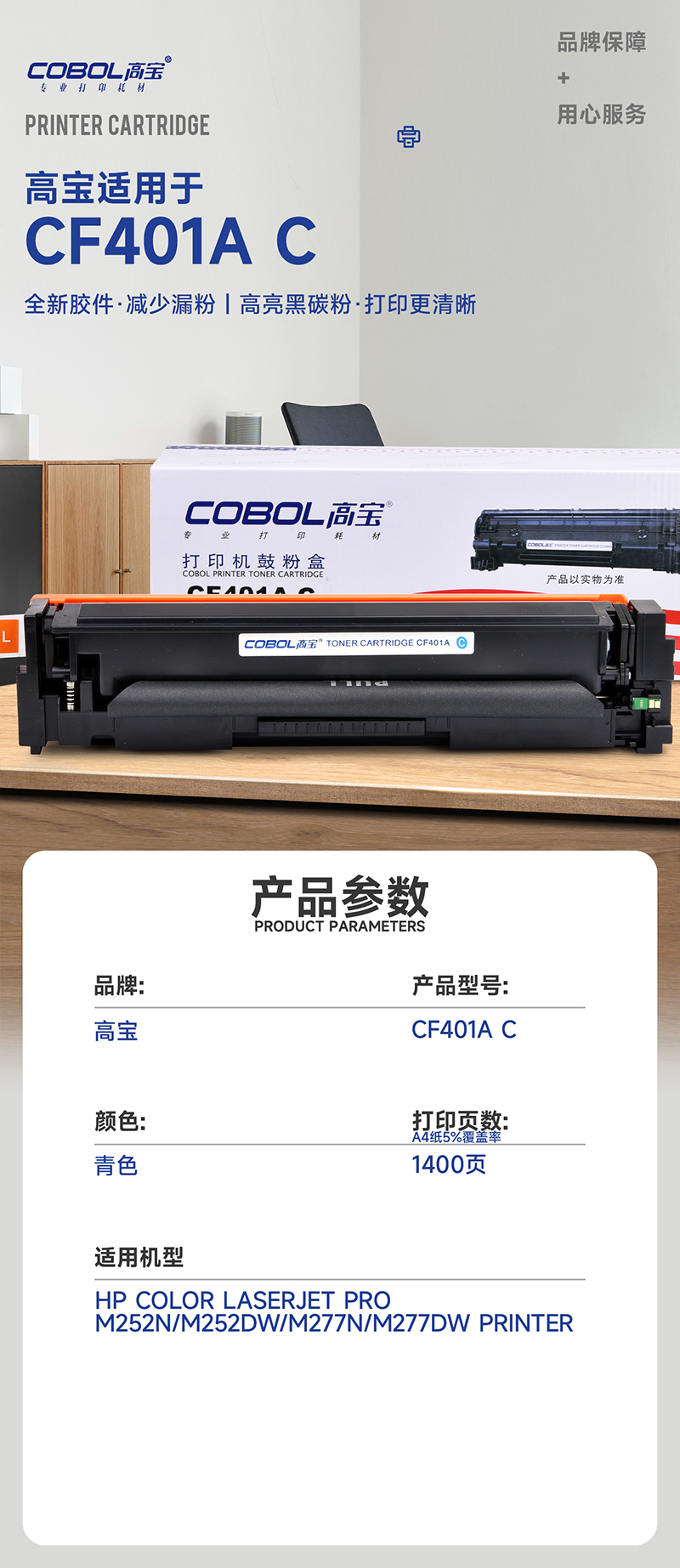 高宝COBOL CF401A C硒鼓蓝色适用惠普M252n/M252dw/M277n/M277d/支 宝石蓝